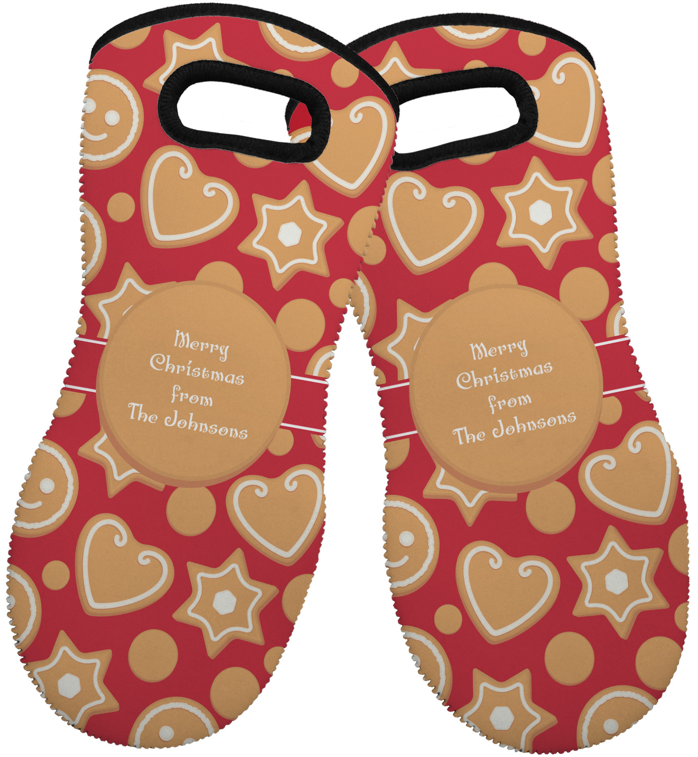 These heat resistant gloves are made entirely of a durable neoprene; the front features a softer texture, while the palm's side has a textured surface, meant to handle heat up to 500 degrees Fahrenheit. Thick, heavy duty stitching connects the two sides. A small, oval cutout appears on the front, and can be used to hang and store the mitt. Your personalization appears on the front, and the upper part of the back of the mitt. The style of these oven mitts are suitable for both the right and left hand, depending on your needs. If you need one for each hand, be sure to order two!