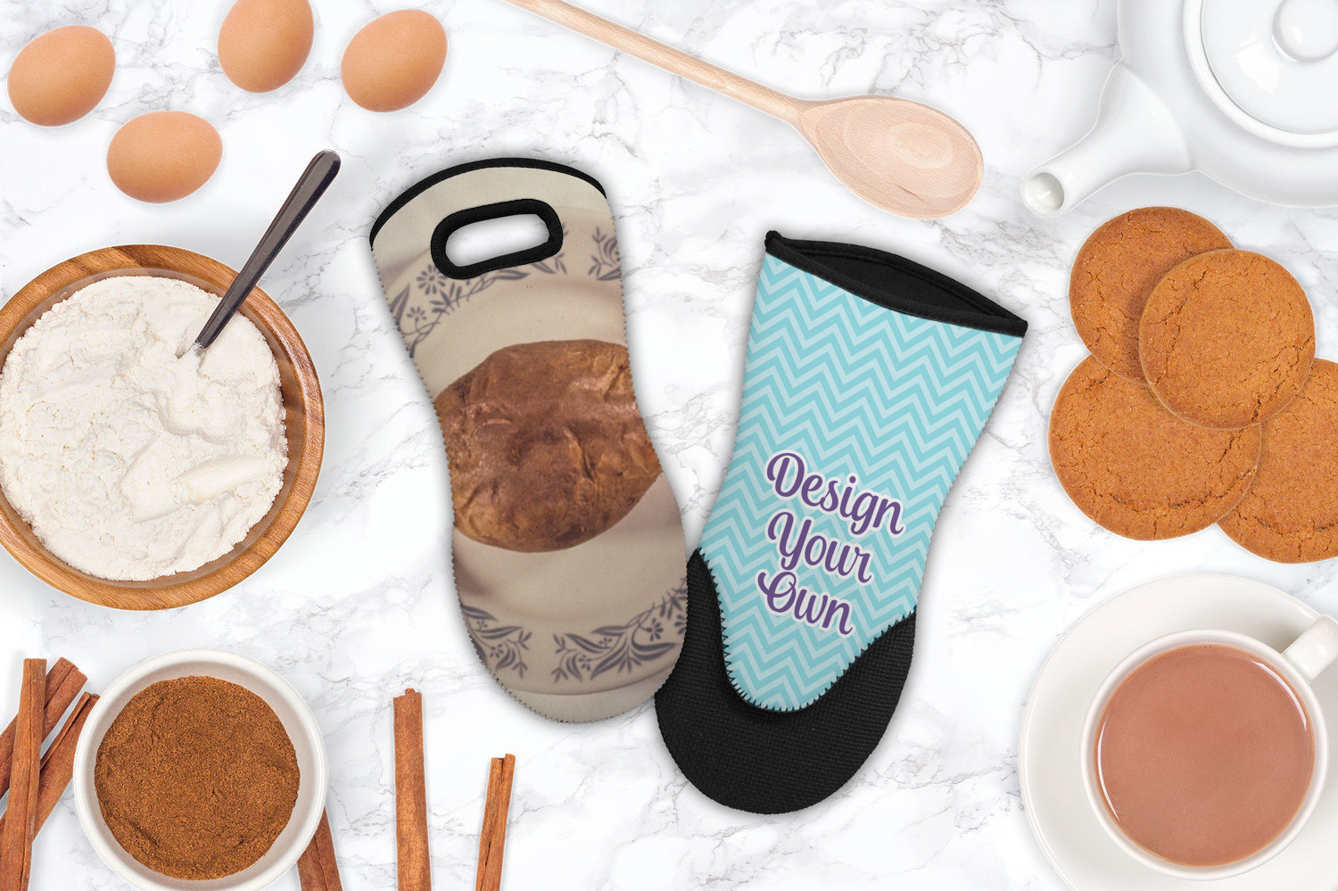 Update your collection of kitchen apparel and accessories with our neoprene oven mitts! These cooking gloves are highly practical and can be personalized to match your unparalleled, individual style. Customize one to coordinate with the rest of your kitchen's decor, or as a gift for the self-proclaimed baker in your life!