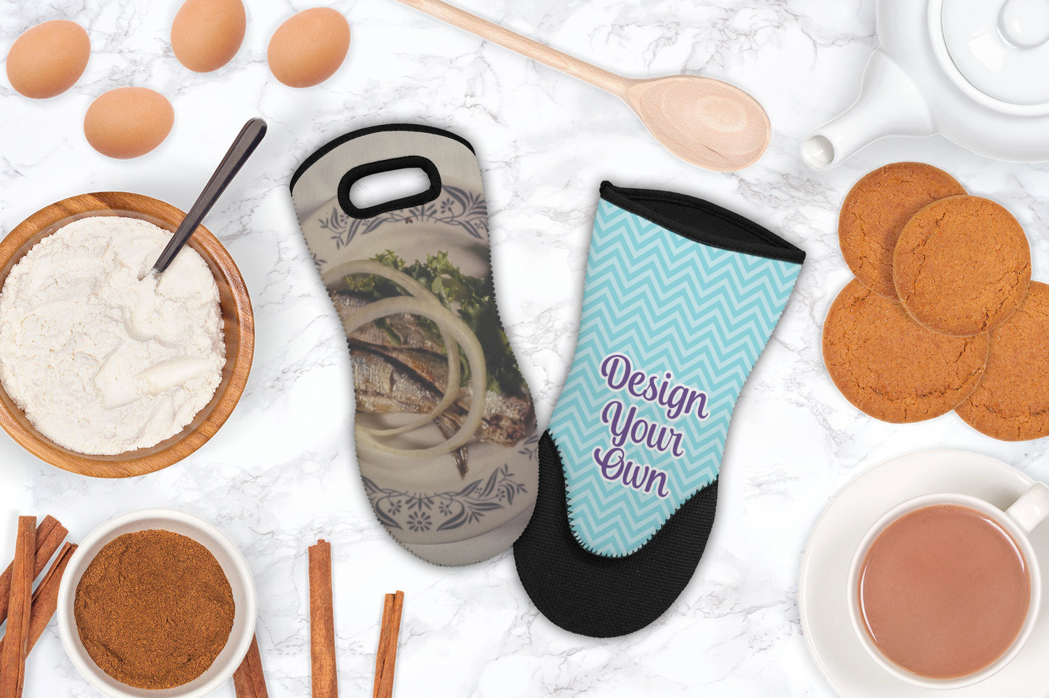 Update your collection of kitchen apparel and accessories with our neoprene oven mitts! These cooking gloves are highly practical and can be personalized to match your unparalleled, individual style. Customize one to coordinate with the rest of your kitchen's decor, or as a gift for the self-proclaimed baker in your life!