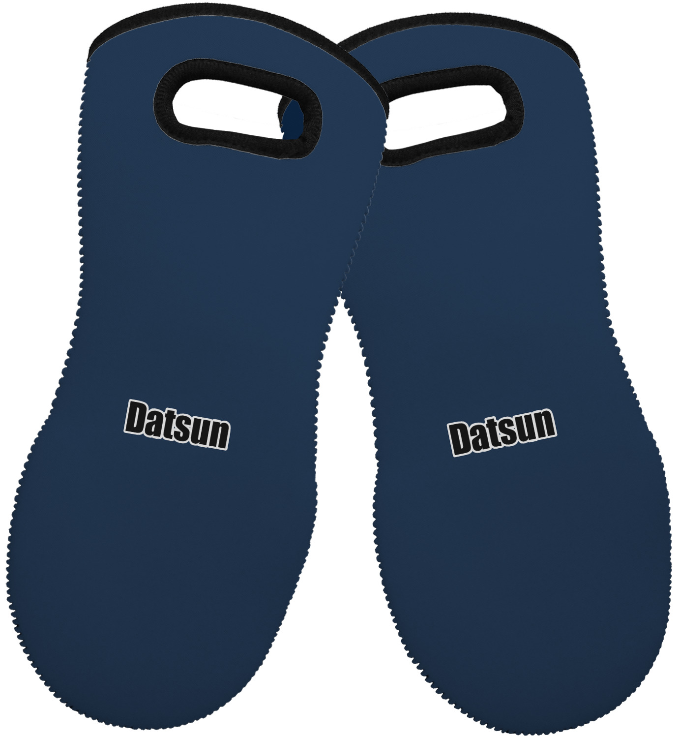 These heat resistant gloves are made entirely of a durable neoprene; the front features a softer texture, while the palm's side has a textured surface, meant to handle heat up to 500 degrees Fahrenheit. Thick, heavy duty stitching connects the two sides. A small, oval cutout appears on the front, and can be used to hang and store the mitt. Your personalization appears on the front, and the upper part of the back of the mitt. The style of these oven mitts are suitable for both the right and left hand, depending on your needs. If you need one for each hand, be sure to order two!