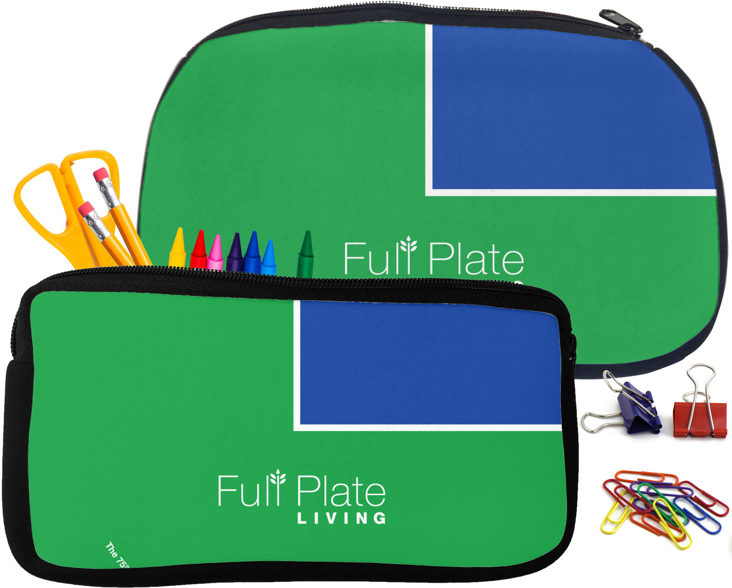 Built from durable neoprene, these pencil pouches, are water resistant, and prevent leaking ink from spilling into your backpack or purse. These custom pencil cases secure with a robust, black zipper. We print your personalized design on the front of this pouch, while the remaining sides a simple black color. These colored pencil cases [880] are sold in two sizes; our smaller version measures at 8.5 by 4.5 inches, while the medium measures at 10.5 by 6.5 inches. The smaller size is more suitable for holding pencils and pens, while our medium size can accommodate pencil sharpeners, scissors, and erasers.