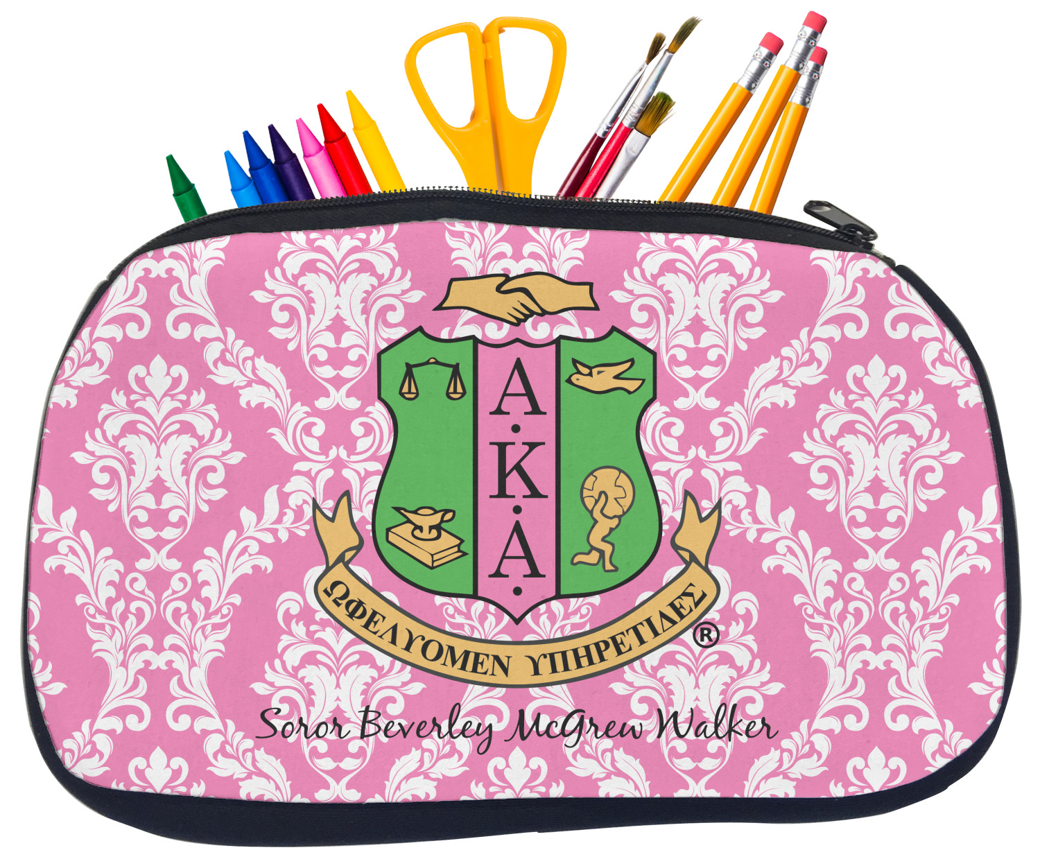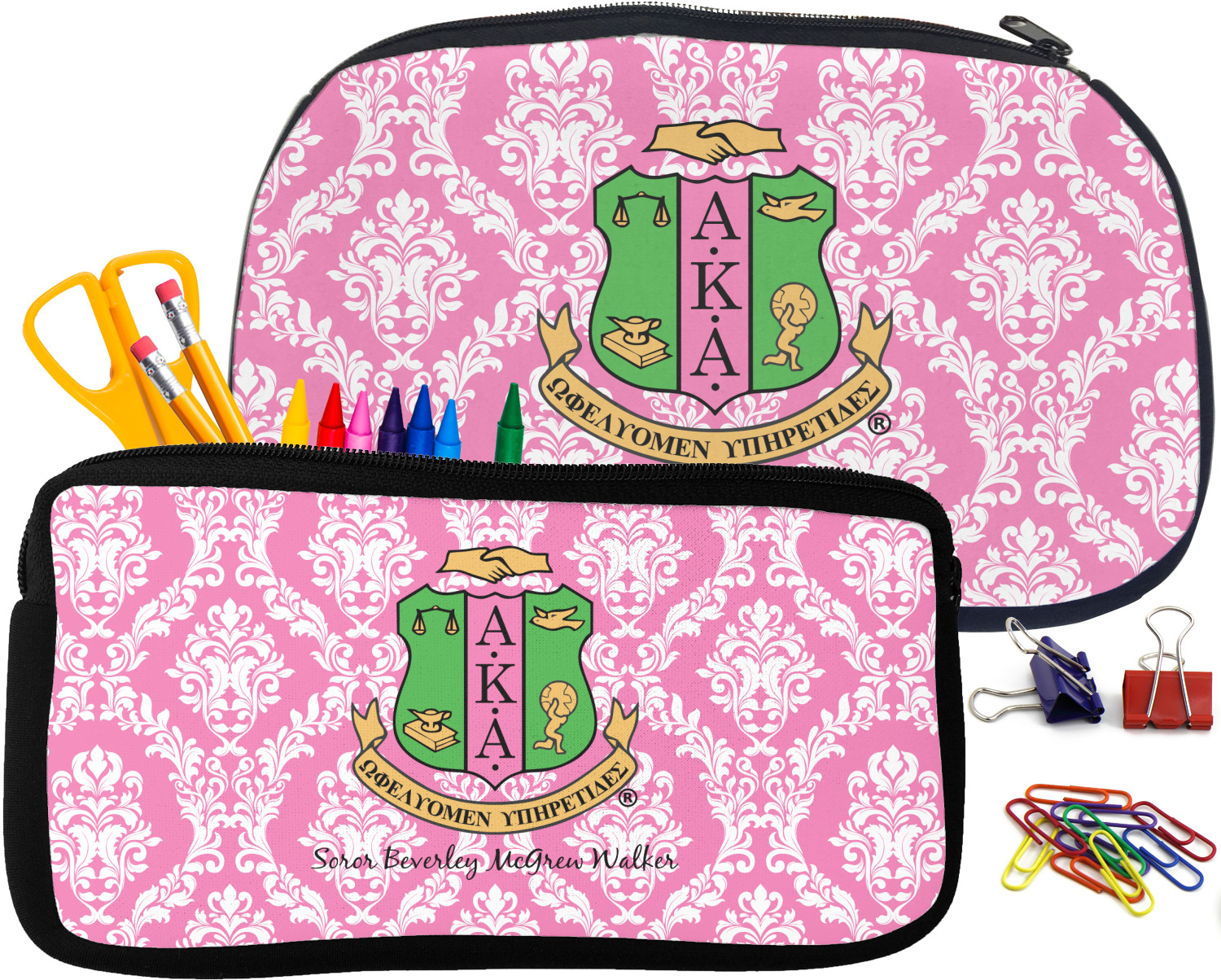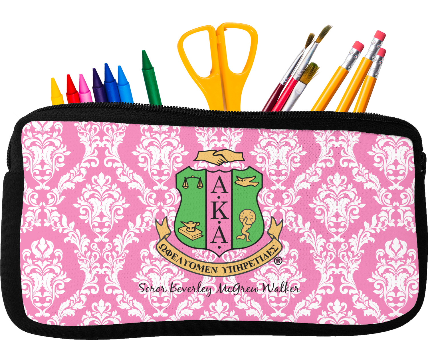 Built from durable neoprene, these pencil pouches, are water resistant, and prevent leaking ink from spilling into your backpack or purse. These custom pencil cases secure with a robust, black zipper. We print your personalized design on the front of this pouch, while the remaining sides a simple black color. These colored pencil cases [880] are sold in two sizes; our smaller version measures at 8.5 by 4.5 inches, while the medium measures at 10.5 by 6.5 inches. The smaller size is more suitable for holding pencils and pens, while our medium size can accommodate pencil sharpeners, scissors, and erasers.