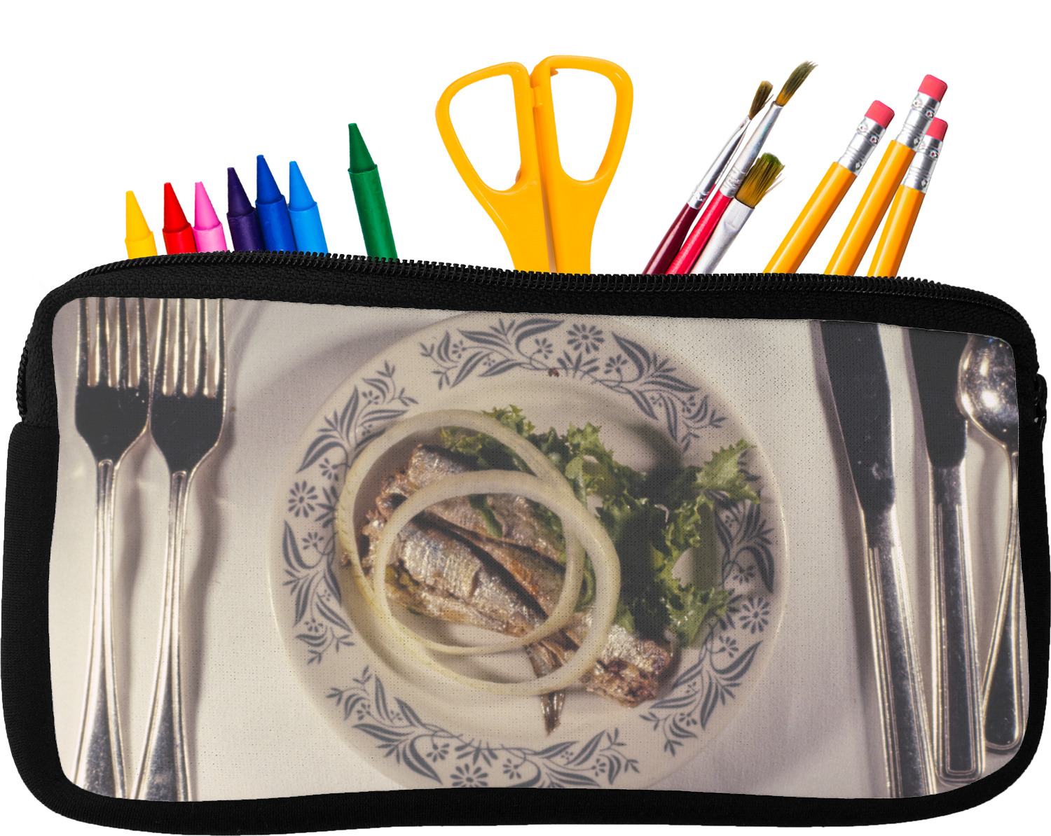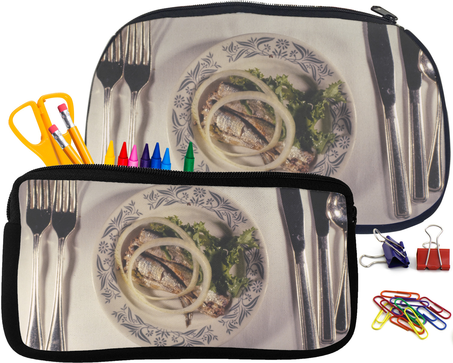 Built from durable neoprene, these pencil pouches, are water resistant, and prevent leaking ink from spilling into your backpack or purse. These custom pencil cases secure with a robust, black zipper. We print your personalized design on the front of this pouch, while the remaining sides a simple black color. These colored pencil cases [880] are sold in two sizes; our smaller version measures at 8.5 by 4.5 inches, while the medium measures at 10.5 by 6.5 inches. The smaller size is more suitable for holding pencils and pens, while our medium size can accommodate pencil sharpeners, scissors, and erasers.