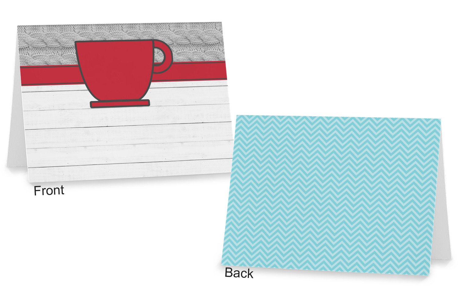 Our custom folded note cards are printed on premium 100lb. card stock and comes with white envelopes. The note card measure 5.5 by 4.25 inches and are blank on the inside for your handwritten message.