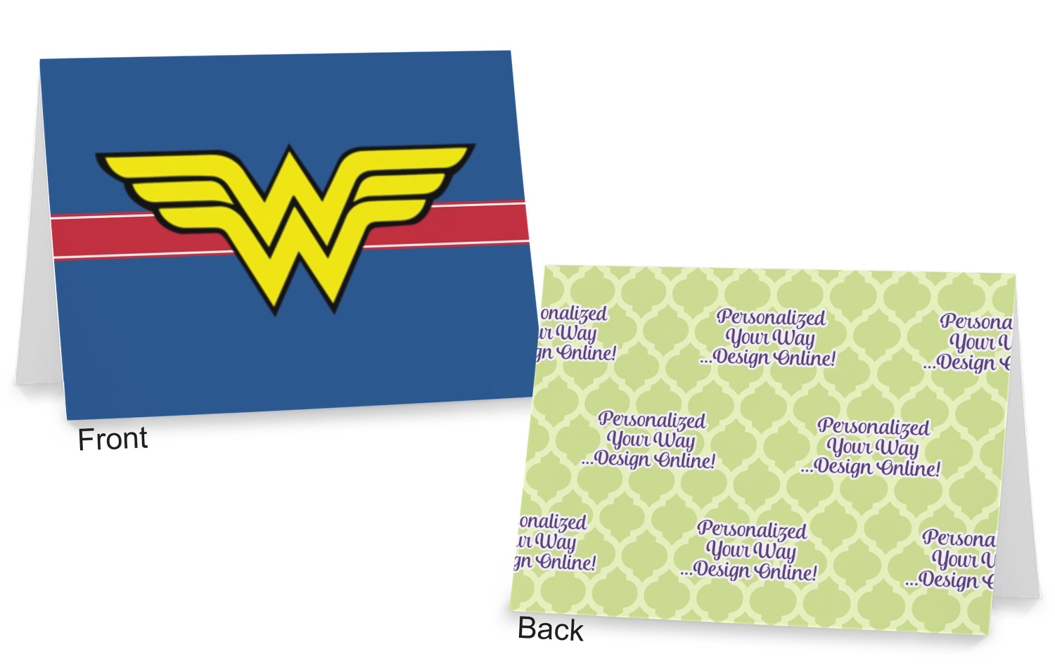 The cards can be customized horizontally or vertically. You can personalized the front AND the back to your exact specifications.