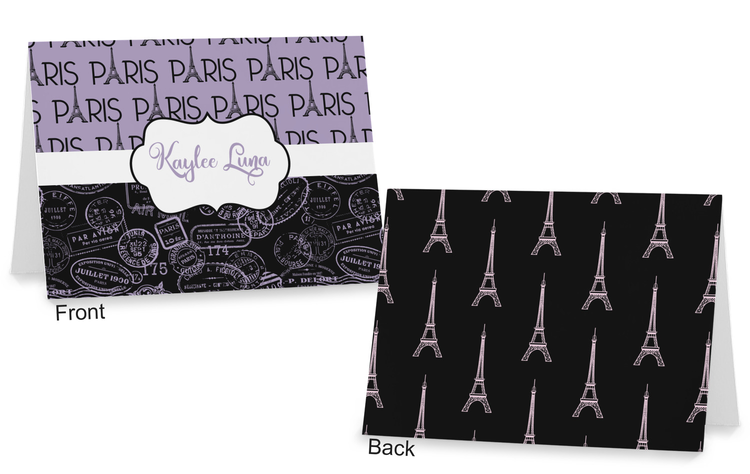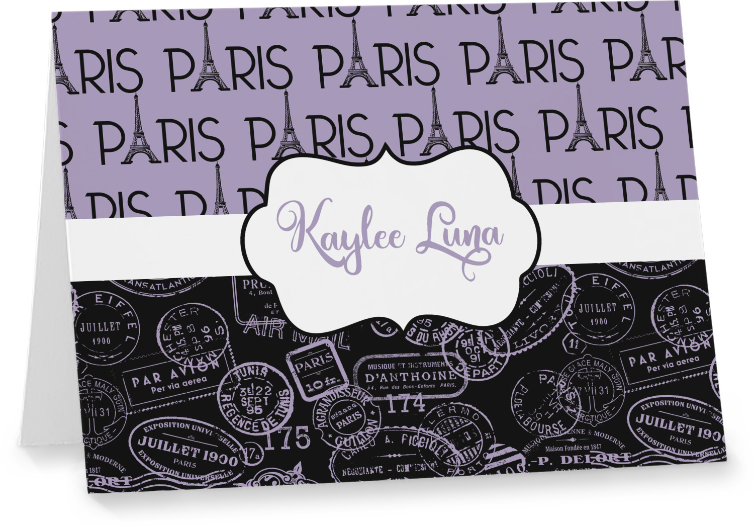 Our custom folded note cards are printed on premium 100lb. card stock and comes with white envelopes. The note card measure 5.5 by 4.25 inches and are blank on the inside for your handwritten message.