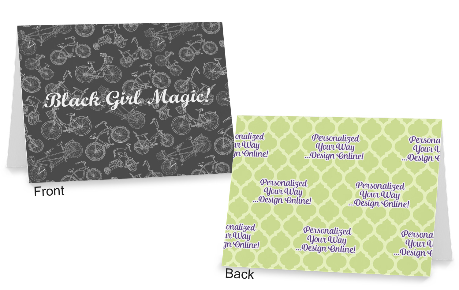 The cards can be customized horizontally or vertically. You can personalized the front AND the back to your exact specifications.