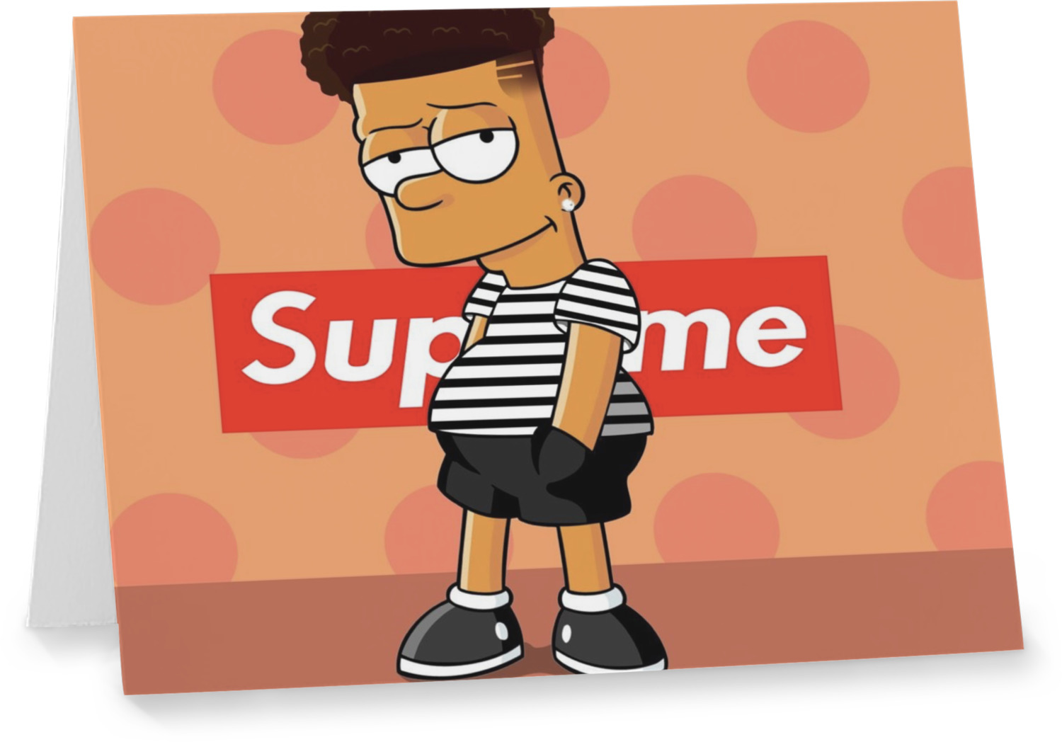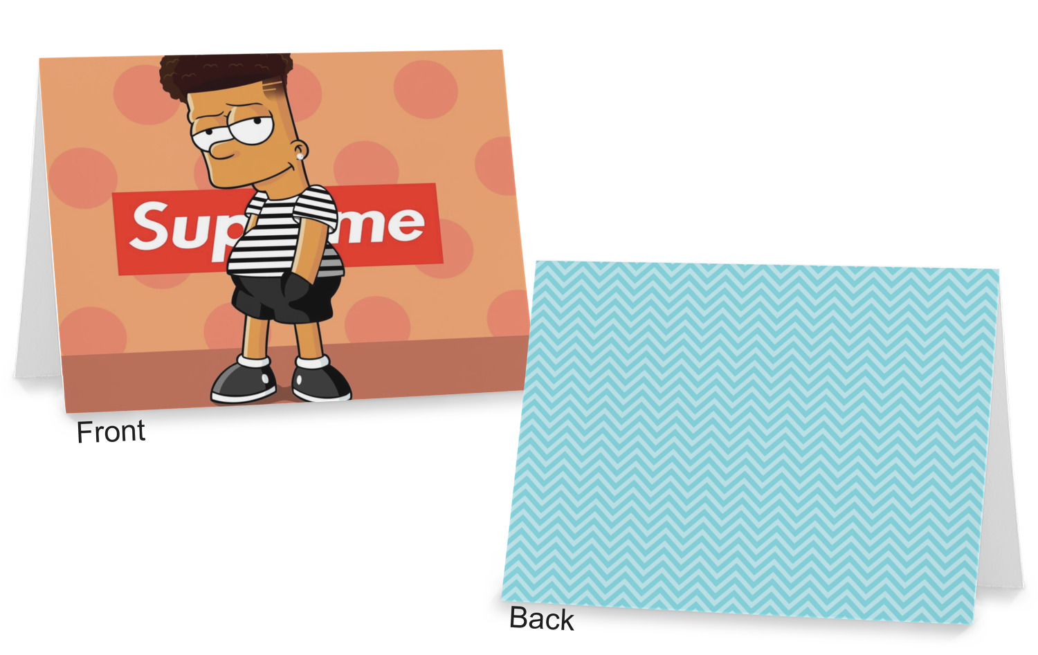 Our custom folded note cards are printed on premium 100lb. card stock and comes with white envelopes. The note card measure 5.5 by 4.25 inches and are blank on the inside for your handwritten message.