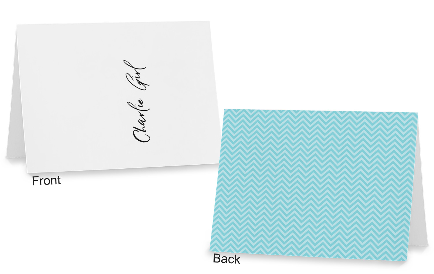 Our custom folded note cards are printed on premium 100lb. card stock and comes with white envelopes. The note card measure 5.5 by 4.25 inches and are blank on the inside for your handwritten message.