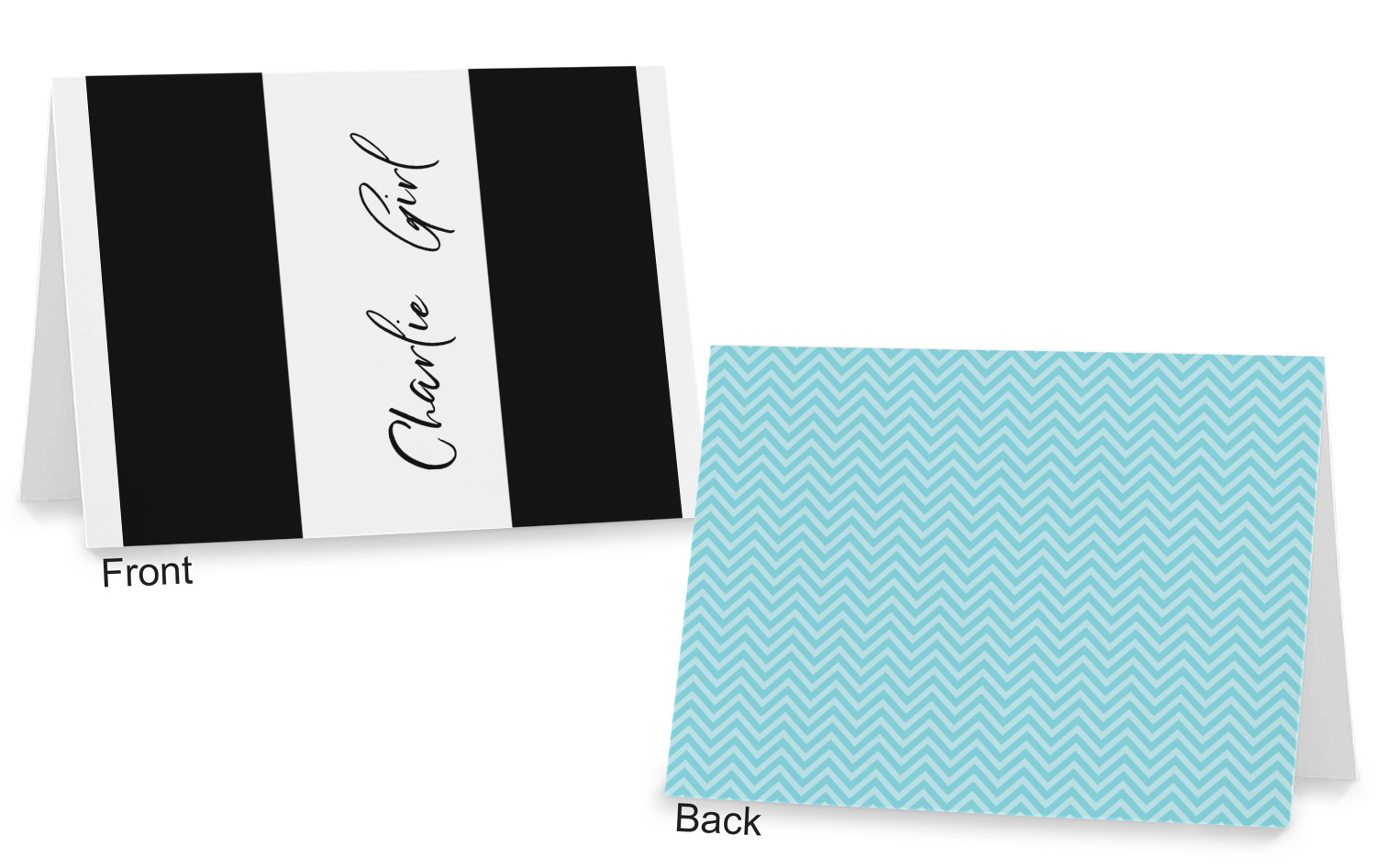 The cards can be customized horizontally or vertically. You can personalized the front AND the back to your exact specifications.