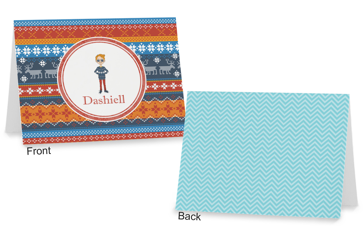 Our custom folded note cards are printed on premium 100lb. card stock and comes with white envelopes. The note card measure 5.5 by 4.25 inches and are blank on the inside for your handwritten message.