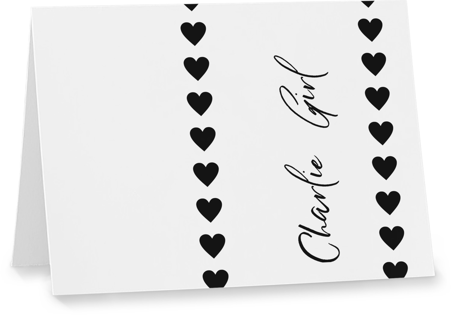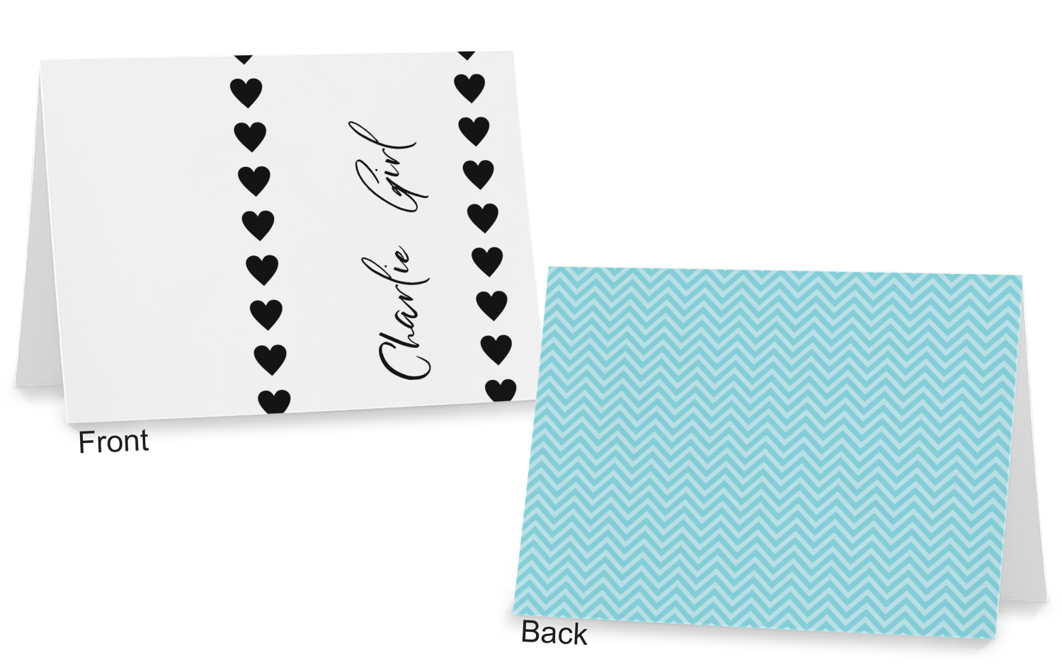 Our custom folded note cards are printed on premium 100lb. card stock and comes with white envelopes. The note card measure 5.5 by 4.25 inches and are blank on the inside for your handwritten message.