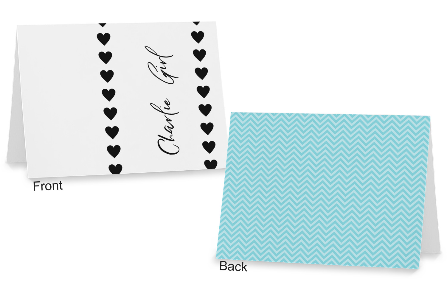 The cards can be customized horizontally or vertically. You can personalized the front AND the back to your exact specifications.