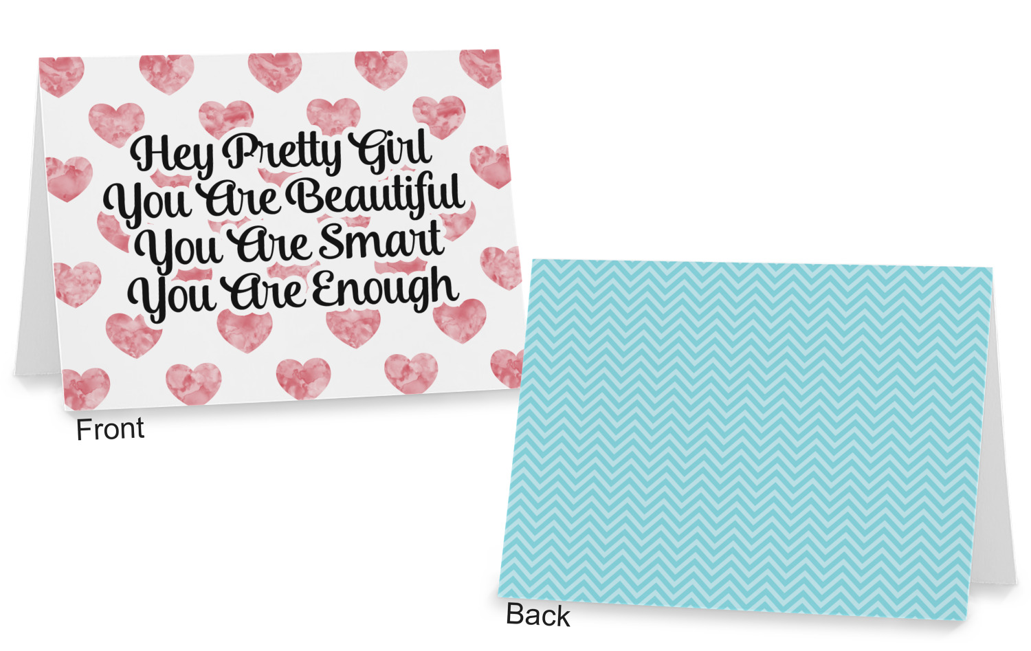 Our custom folded note cards are printed on premium 100lb. card stock and comes with white envelopes. The note card measure 5.5 by 4.25 inches and are blank on the inside for your handwritten message.
