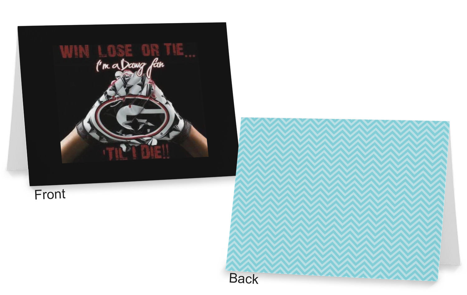 The cards can be customized horizontally or vertically. You can personalized the front AND the back to your exact specifications.