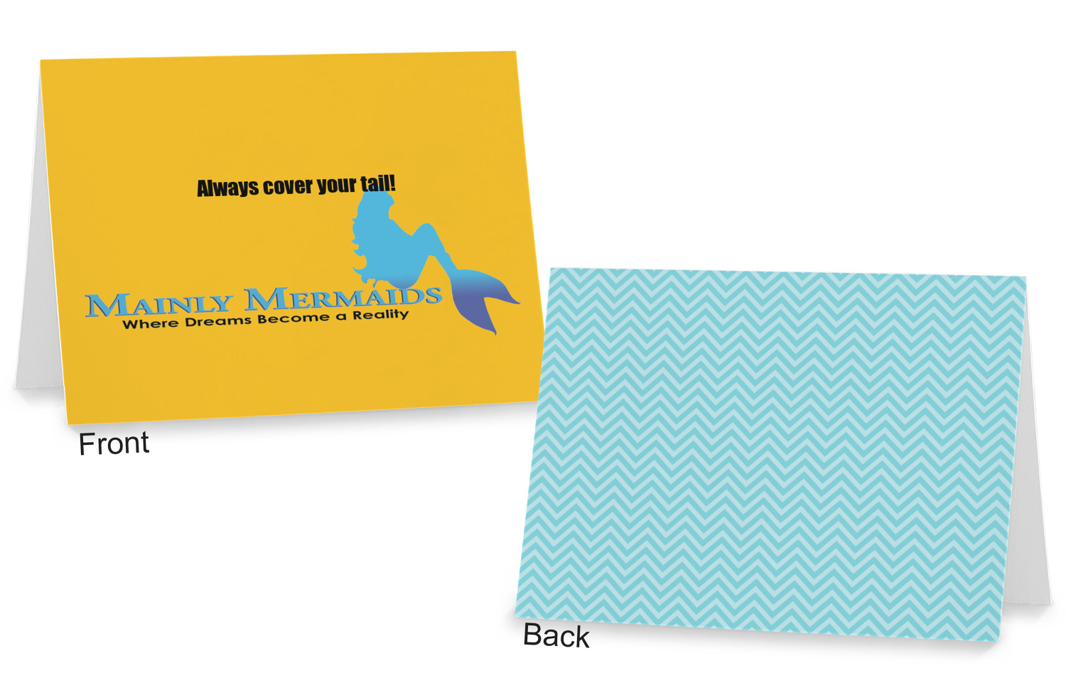 Our custom folded note cards are printed on premium 100lb. card stock and comes with white envelopes. The note card measure 5.5 by 4.25 inches and are blank on the inside for your handwritten message.