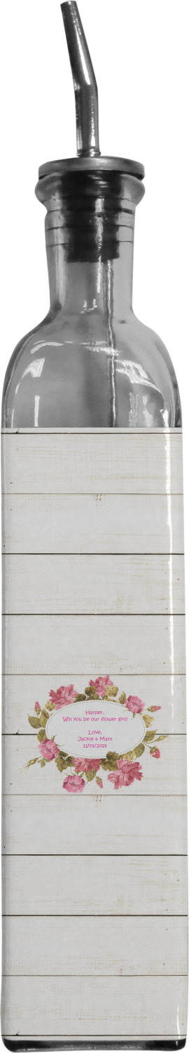 Made from recycled glass in Spain, these oil bottles have a classic, delicate look, and are accompanied by a metal spout for controlled pouring. Each bottle holds approximately 13 ounces and measures at 12 by 2 inches. We customize your glass oil bottle by applying your personalized design on the front and sides, using an adhesive. Our customizable stickers are made from high quality, gloss vinyl and are printed with waterproof, eco-solvent inks. These pieces are machine cut for accuracy and symmetry. The result is a robust, waterproof, adhesive decal that will not fade or deteriorate with time.