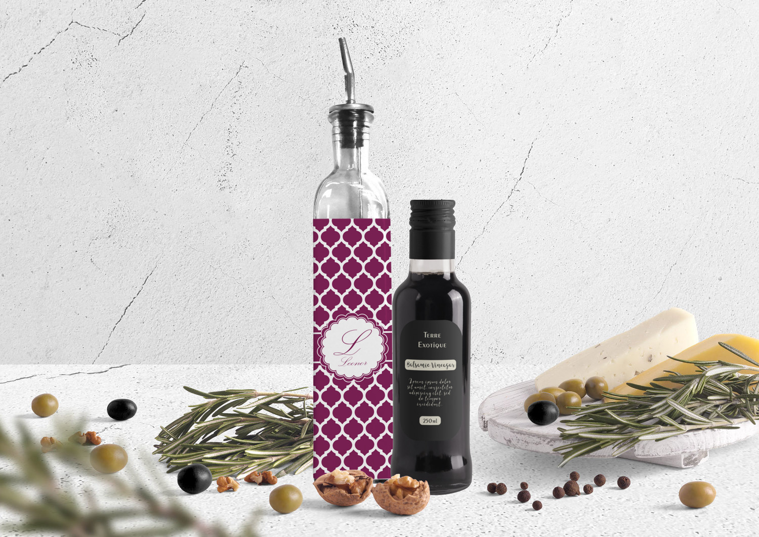 Made from recycled glass in Spain, these oil bottles have a classic, delicate look, and are accompanied by a metal spout for controlled pouring. Each bottle holds approximately 13 ounces and measures at 12 by 2 inches. We customize your glass oil bottle by applying your personalized design on the front and sides, using an adhesive. Our customizable stickers are made from high quality, gloss vinyl and are printed with waterproof, eco-solvent inks. These pieces are machine cut for accuracy and symmetry. The result is a robust, waterproof, adhesive decal that will not fade or deteriorate with time.