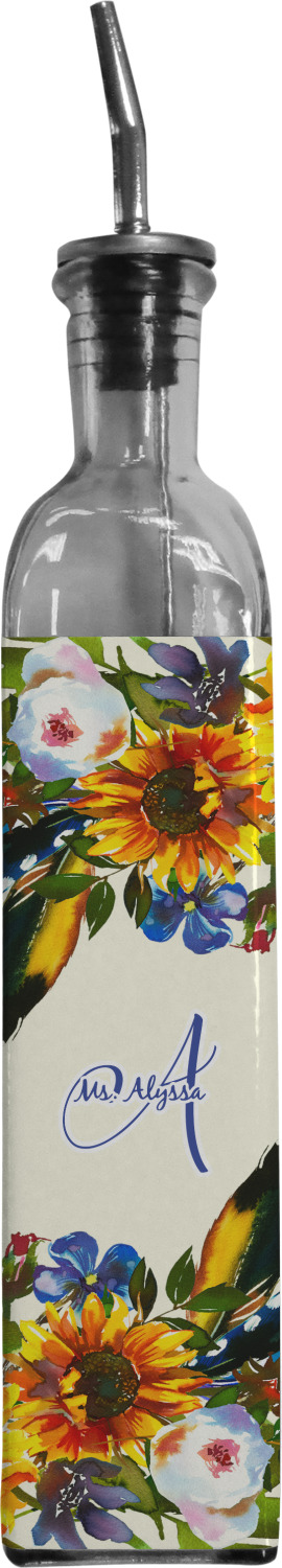 Made from recycled glass in Spain, these oil bottles have a classic, delicate look, and are accompanied by a metal spout for controlled pouring. Each bottle holds approximately 13 ounces and measures at 12 by 2 inches. We customize your glass oil bottle by applying your personalized design on the front and sides, using an adhesive. Our customizable stickers are made from high quality, gloss vinyl and are printed with waterproof, eco-solvent inks. These pieces are machine cut for accuracy and symmetry. The result is a robust, waterproof, adhesive decal that will not fade or deteriorate with time.