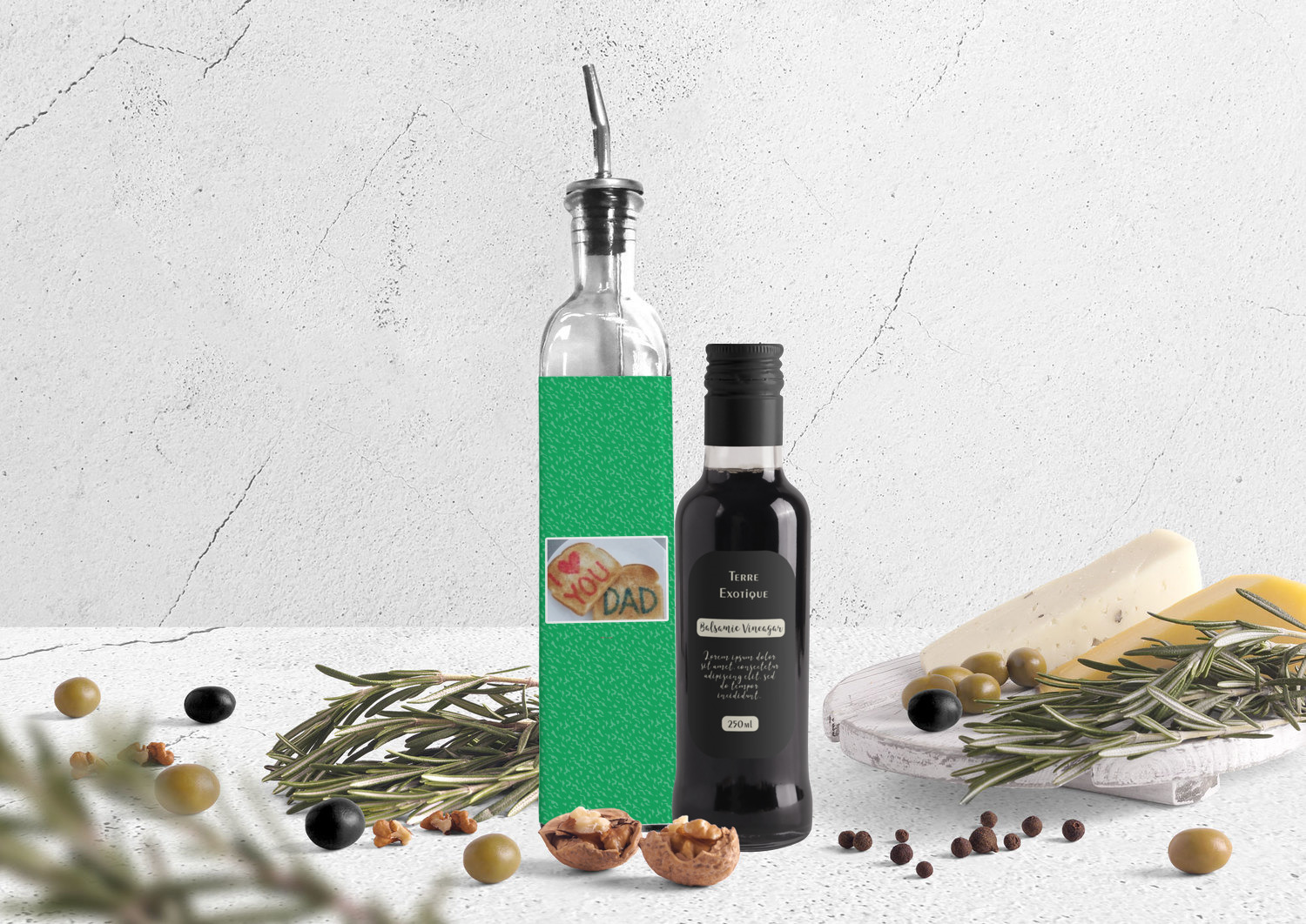 Made from recycled glass in Spain, these oil bottles have a classic, delicate look, and are accompanied by a metal spout for controlled pouring. Each bottle holds approximately 13 ounces and measures at 12 by 2 inches. We customize your glass oil bottle by applying your personalized design on the front and sides, using an adhesive. Our customizable stickers are made from high quality, gloss vinyl and are printed with waterproof, eco-solvent inks. These pieces are machine cut for accuracy and symmetry. The result is a robust, waterproof, adhesive decal that will not fade or deteriorate with time.