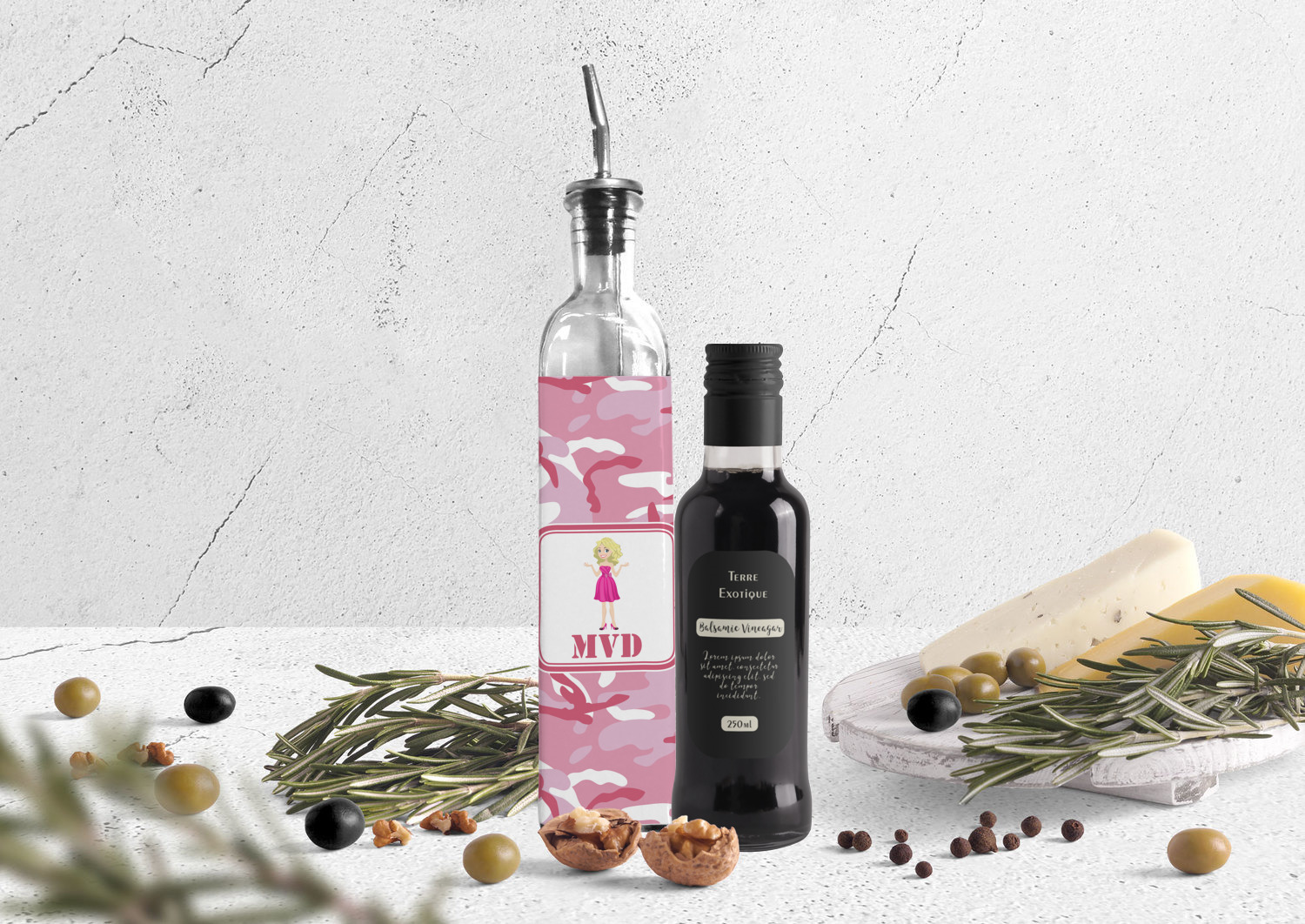 Made from recycled glass in Spain, these oil bottles have a classic, delicate look, and are accompanied by a metal spout for controlled pouring. Each bottle holds approximately 13 ounces and measures at 12 by 2 inches. We customize your glass oil bottle by applying your personalized design on the front and sides, using an adhesive. Our customizable stickers are made from high quality, gloss vinyl and are printed with waterproof, eco-solvent inks. These pieces are machine cut for accuracy and symmetry. The result is a robust, waterproof, adhesive decal that will not fade or deteriorate with time.