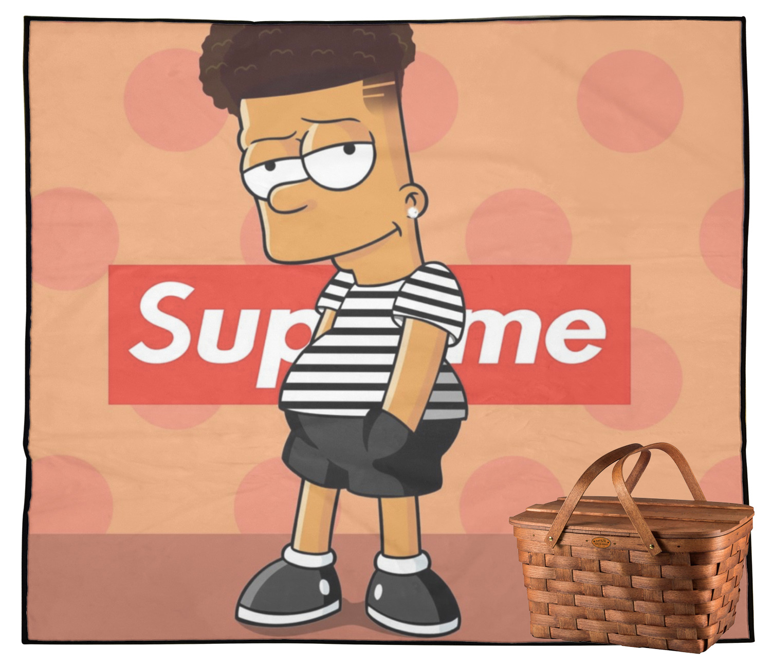 This picnic blanket is perfect for hanging out with your friends at the park or anywhere outside. The top of the blanket is made of a super soft microfiber fleece. The bottom of the blanket is made of a black material similar to a rain jacket and is water repellent as well. This will keep any wet spots on the ground from soaking through your picnic blanket. No one likes a wet blanket. The blanket measures at approximately 50" x 59" and has a nicely finished ribbon edge.