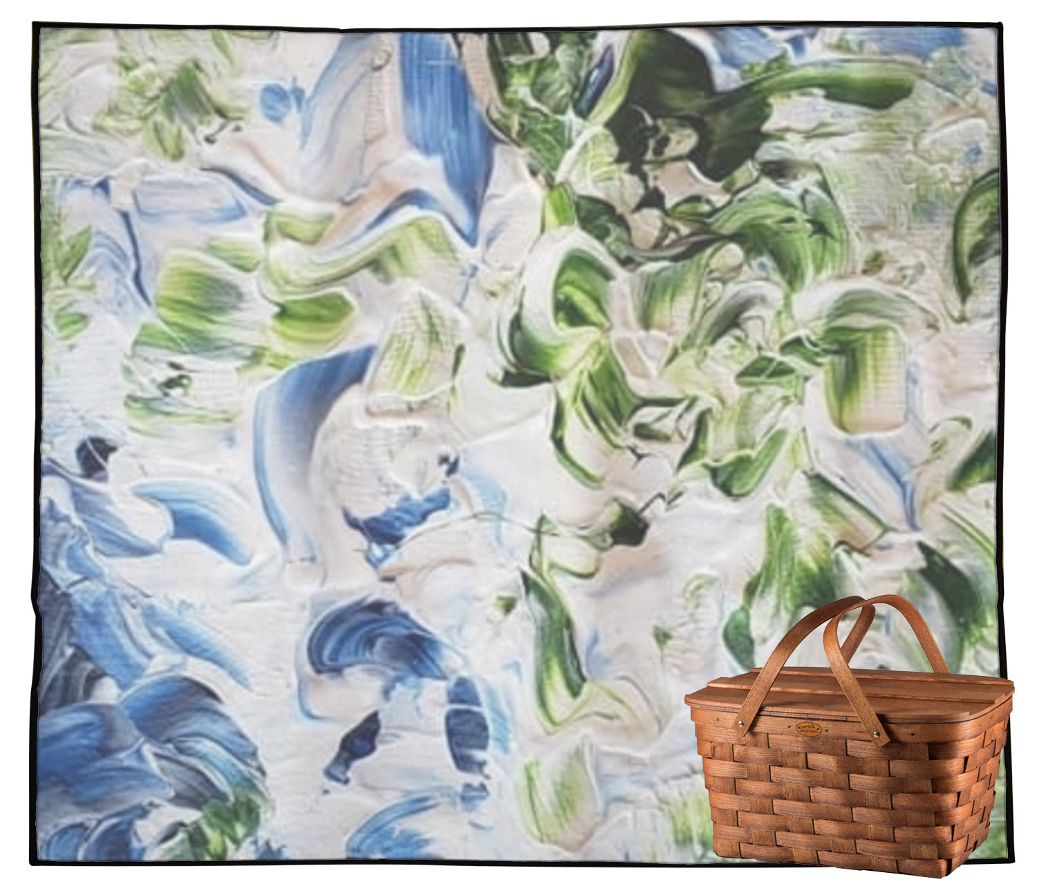 This picnic blanket is perfect for hanging out with your friends at the park or anywhere outside. The top of the blanket is made of a super soft microfiber fleece. The bottom of the blanket is made of a black material similar to a rain jacket and is water repellent as well. This will keep any wet spots on the ground from soaking through your picnic blanket. No one likes a wet blanket. The blanket measures at approximately 50" x 59" and has a nicely finished ribbon edge.
