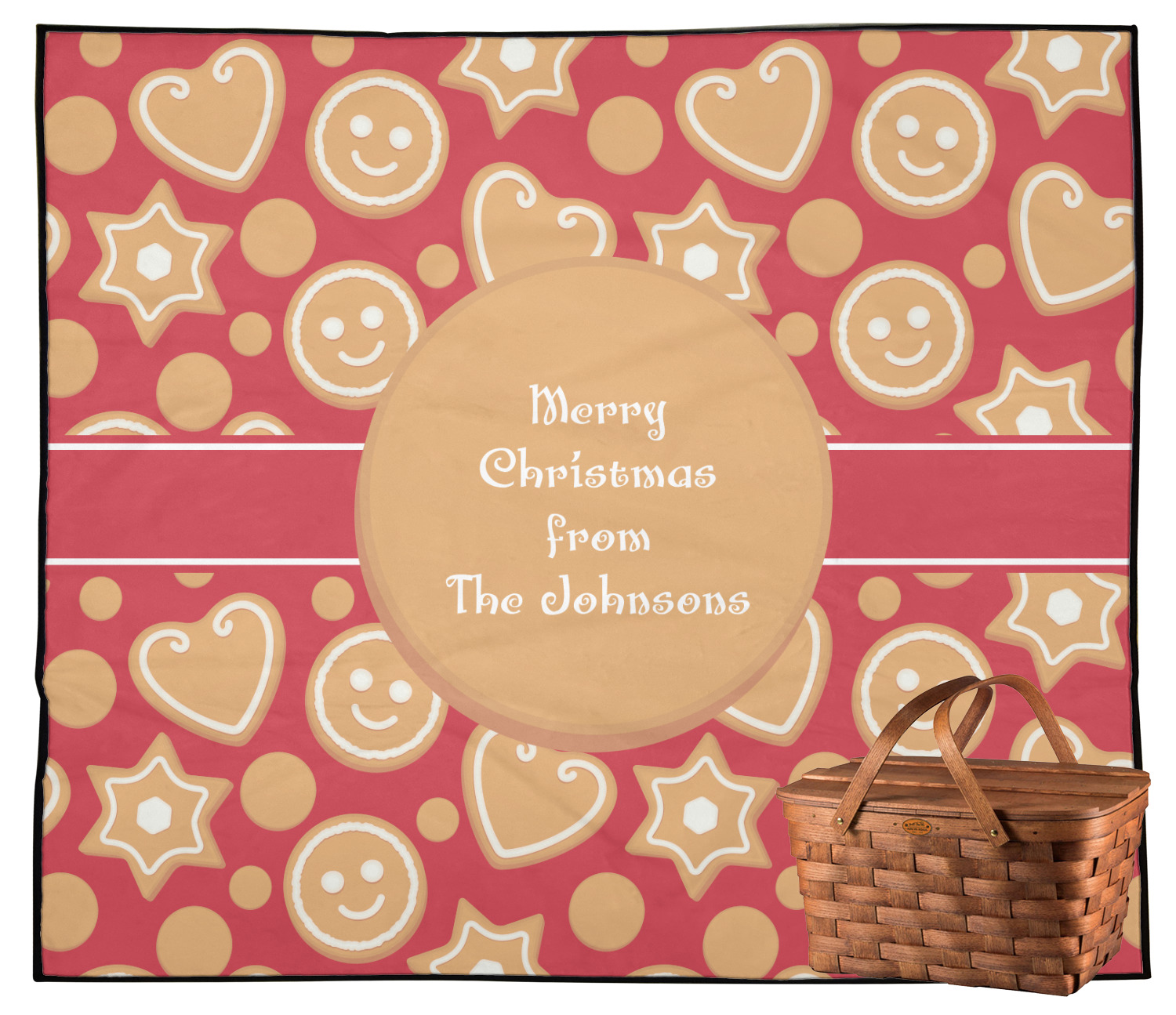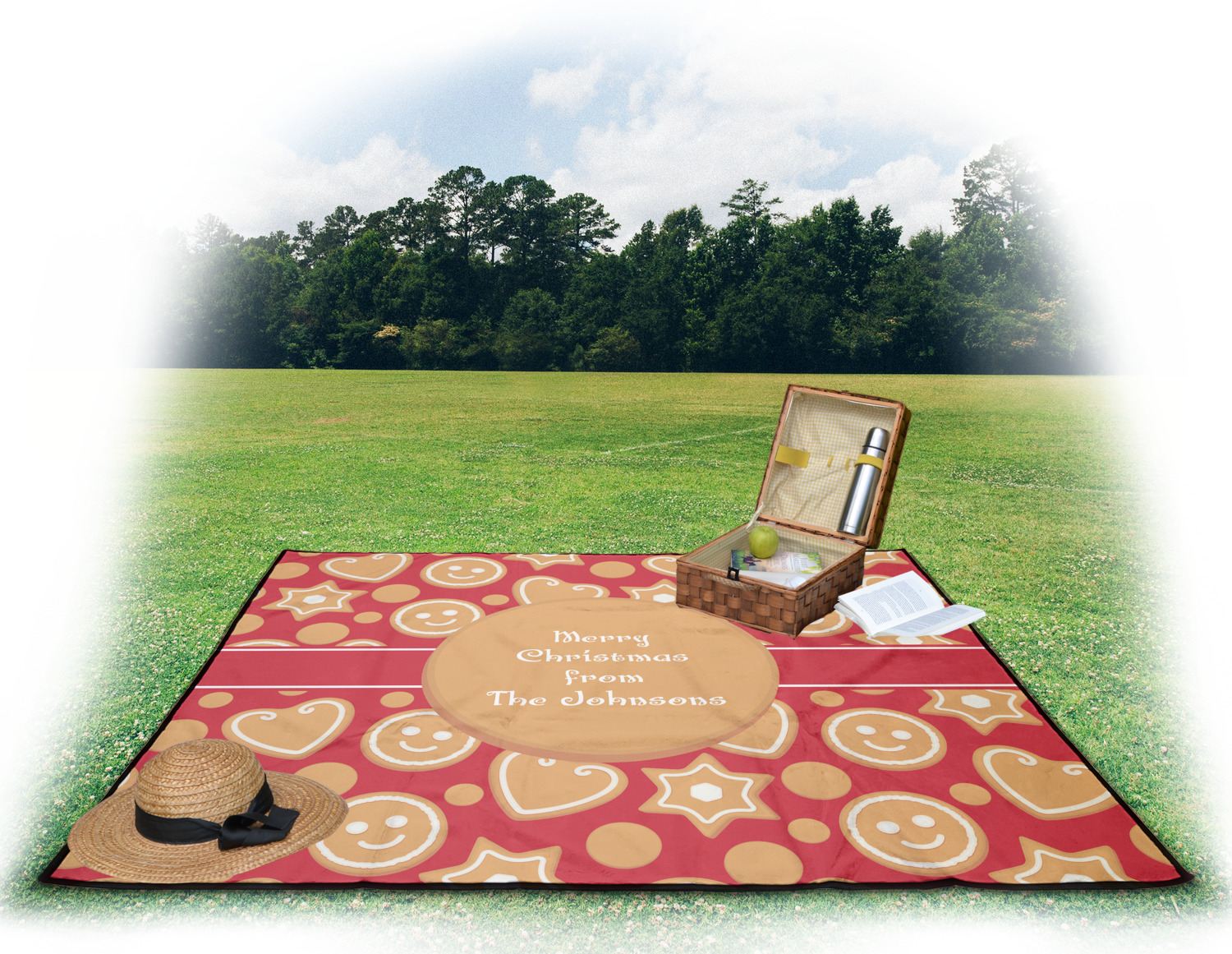 This picnic blanket is perfect for hanging out with your friends at the park or anywhere outside. The top of the blanket is made of a super soft microfiber fleece. The bottom of the blanket is made of a black material similar to a rain jacket and is water repellent as well. This will keep any wet spots on the ground from soaking through your picnic blanket. No one likes a wet blanket. The blanket measures at approximately 50" x 59" and has a nicely finished ribbon edge.