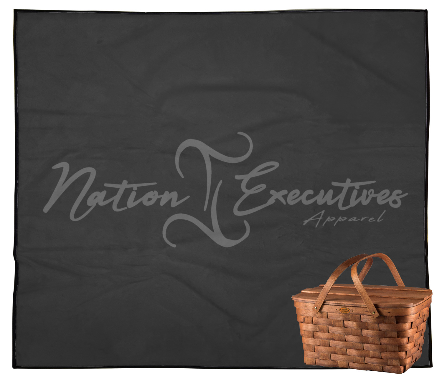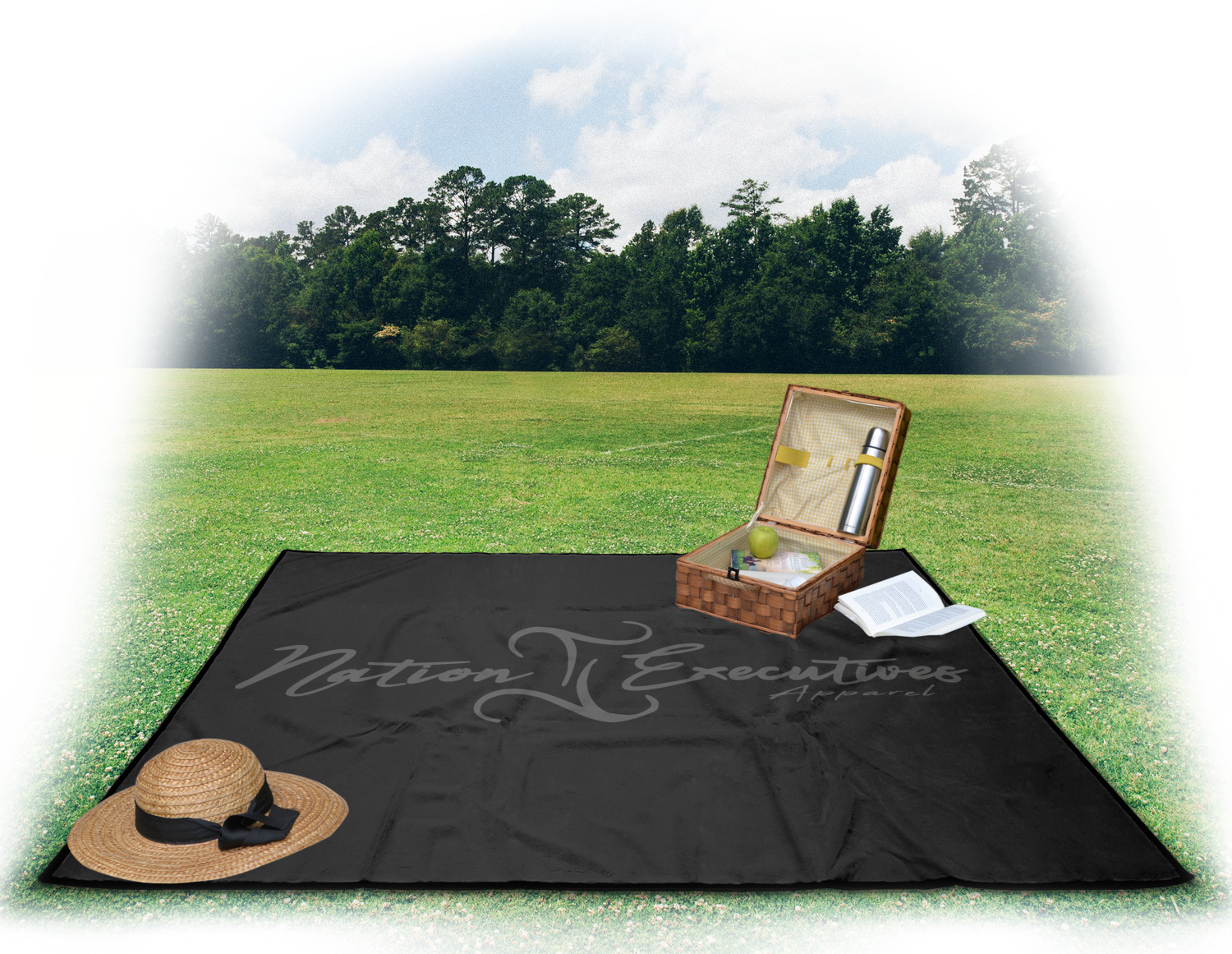 This picnic blanket is perfect for hanging out with your friends at the park or anywhere outside. The top of the blanket is made of a super soft microfiber fleece. The bottom of the blanket is made of a black material similar to a rain jacket and is water repellent as well. This will keep any wet spots on the ground from soaking through your picnic blanket. No one likes a wet blanket. The blanket measures at approximately 50" x 59" and has a nicely finished ribbon edge.