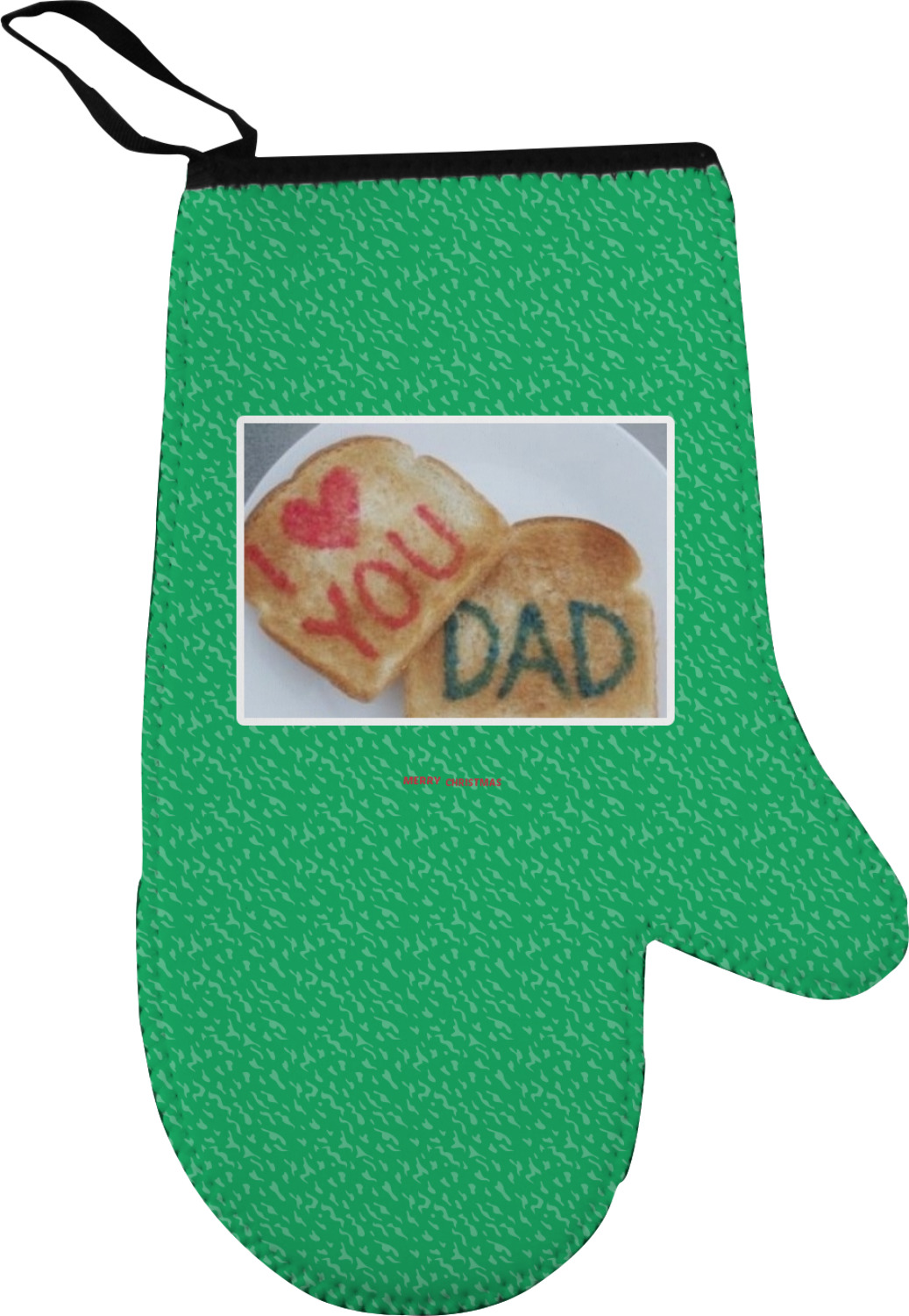 Our oven gloves are made from a durable neoprene and feature a textured, rubberized surface on the palms side for a better grip. A strong stitch joins the neoprene and rubber, increasing the durability of this mitt. These kitchen mittens are spacious and can accommodate both small and large hands. A thin, black loop is attached to the mitts top, which can be used to display and store the mitt. Your customization is displayed across the entire front of the neoprene surface, or the top of the glove. We sell both left and right models of these, separately.