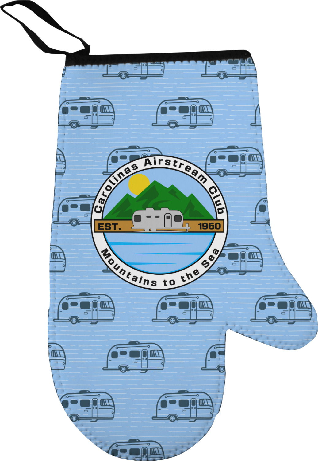 Our oven gloves are made from a durable neoprene and feature a textured, rubberized surface on the palms side for a better grip. A strong stitch joins the neoprene and rubber, increasing the durability of this mitt. These kitchen mittens are spacious and can accommodate both small and large hands. A thin, black loop is attached to the mitts top, which can be used to display and store the mitt. Your customization is displayed across the entire front of the neoprene surface, or the top of the glove. We sell both left and right models of these, separately.