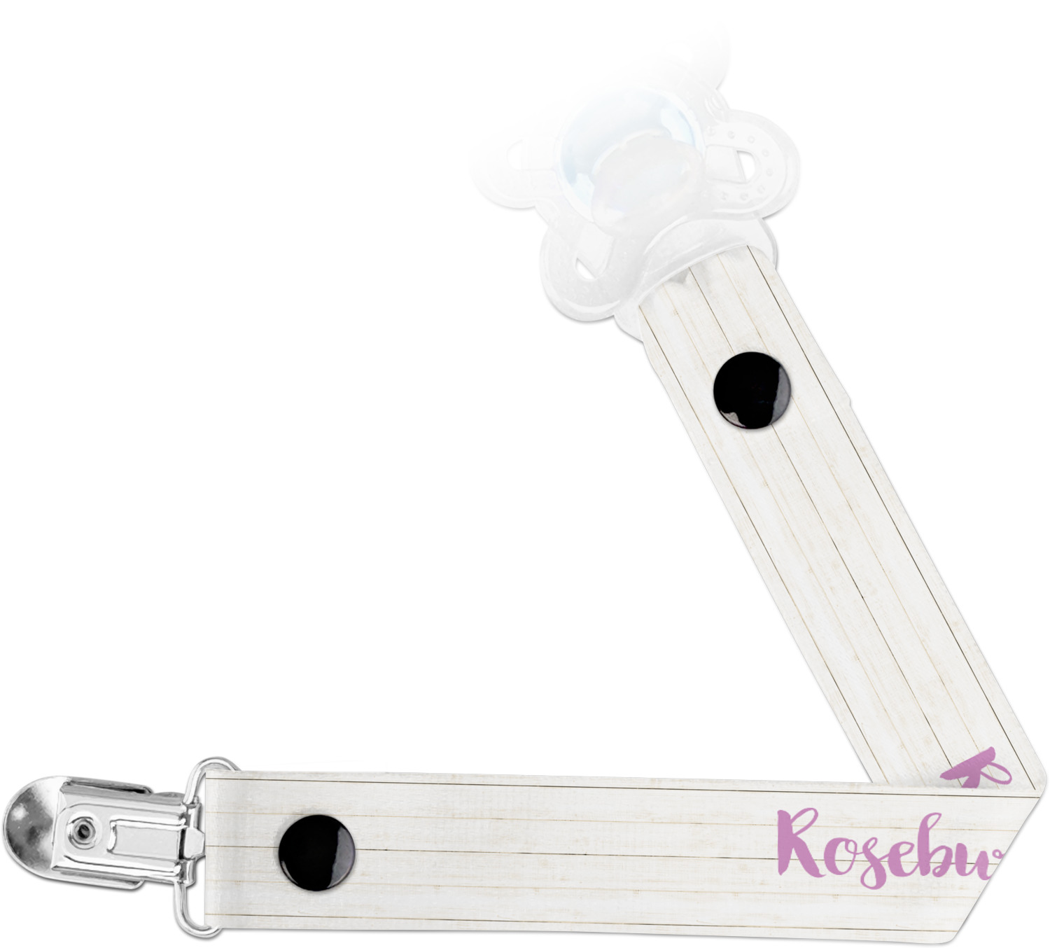 This personalized pacifier clip is the ideal size and measures at approximately 7.5 inches in length, when either end is snapped closed. On one end, you'll find a snap button. This button of your baby's pacifier holder is what can be attached to their pacifier to hold is securely in place. Simply open the snap, slip it through the pacifier opening, and snap it back into place. On the opposite end of this baby pacifier holder, you'll find a metal clip that can secure to a baby's collar or sleeve. This clip ensures that the strap stays in place, and that your baby's pacifier is always on hand.
