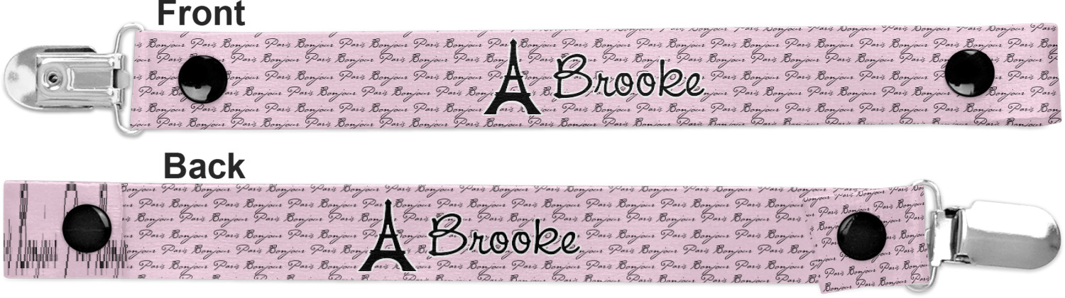 This personalized pacifier clip is the ideal size and measures at approximately 7.5 inches in length, when either end is snapped closed. On one end, you'll find a snap button. This button of your baby's pacifier holder is what can be attached to their pacifier to hold is securely in place. Simply open the snap, slip it through the pacifier opening, and snap it back into place. On the opposite end of this baby pacifier holder, you'll find a metal clip that can secure to a baby's collar or sleeve. This clip ensures that the strap stays in place, and that your baby's pacifier is always on hand.