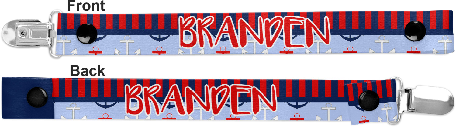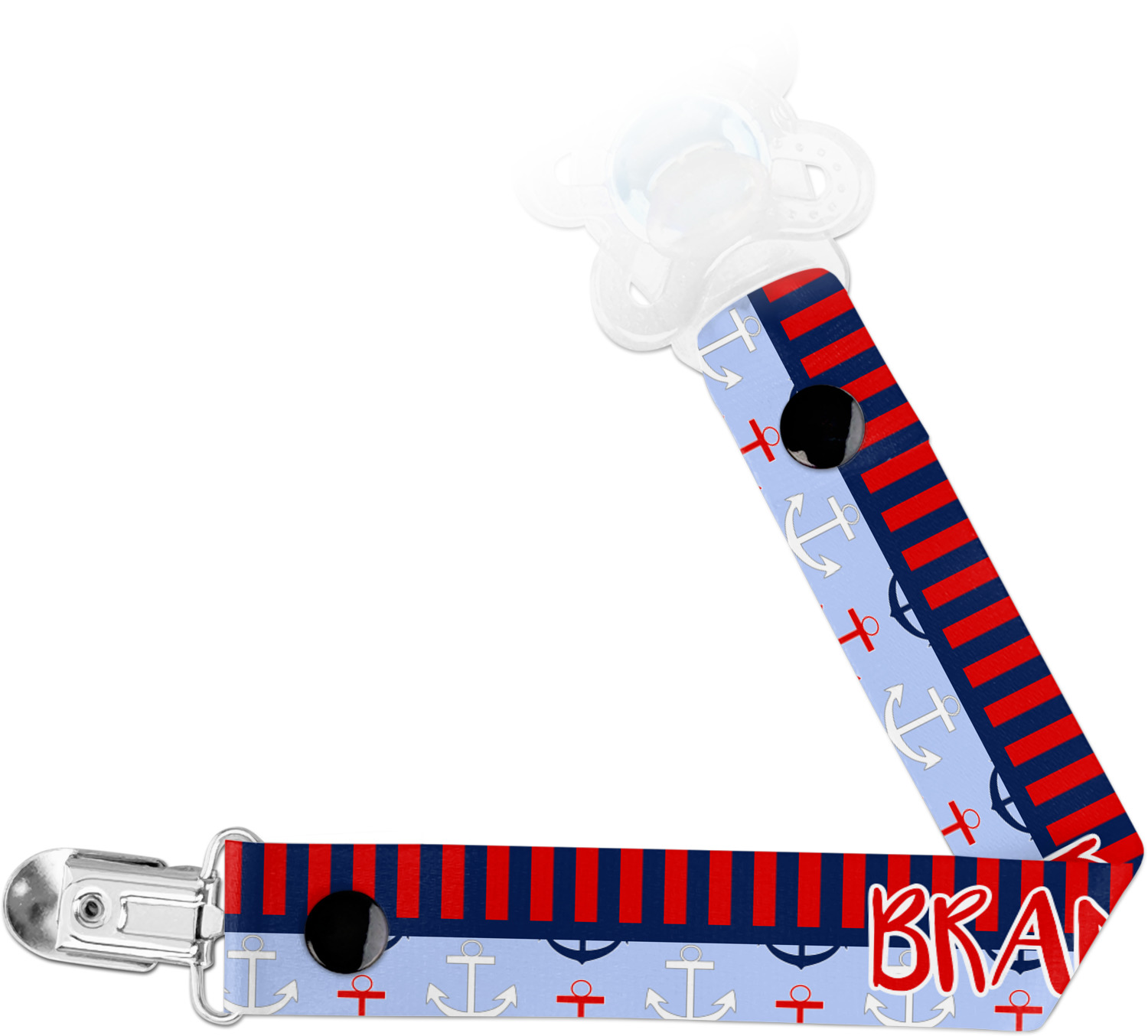 This personalized pacifier clip is the ideal size and measures at approximately 7.5 inches in length, when either end is snapped closed. On one end, you'll find a snap button. This button of your baby's pacifier holder is what can be attached to their pacifier to hold is securely in place. Simply open the snap, slip it through the pacifier opening, and snap it back into place. On the opposite end of this baby pacifier holder, you'll find a metal clip that can secure to a baby's collar or sleeve. This clip ensures that the strap stays in place, and that your baby's pacifier is always on hand.