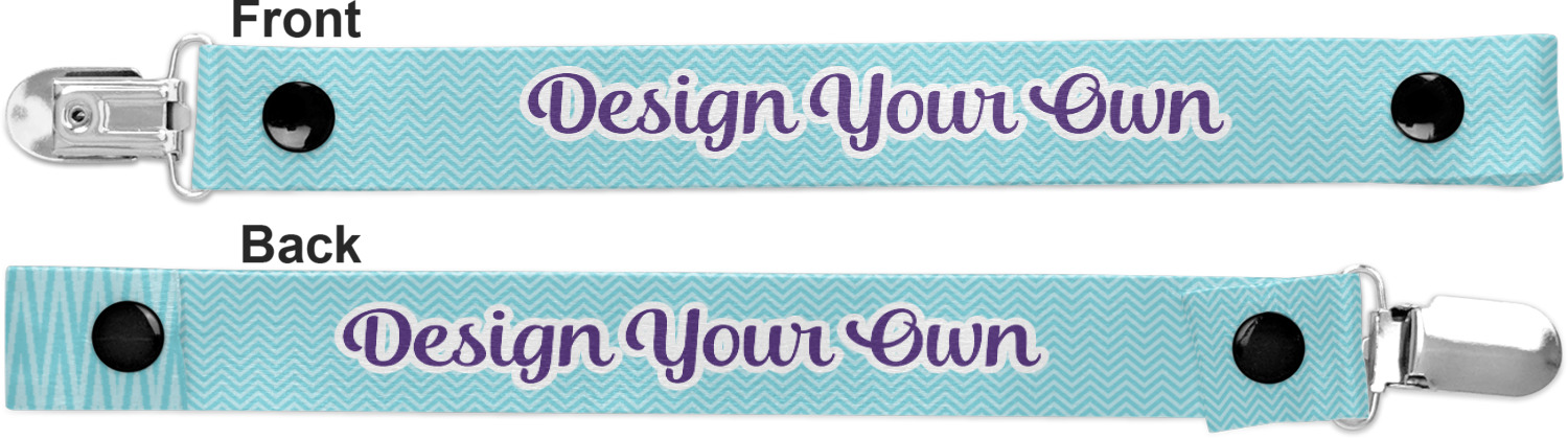 This personalized pacifier clip is the ideal size and measures at approximately 7.5 inches in length, when either end is snapped closed. On one end, you'll find a snap button. This button of your baby's pacifier holder is what can be attached to their pacifier to hold is securely in place. Simply open the snap, slip it through the pacifier opening, and snap it back into place. On the opposite end of this baby pacifier holder, you'll find a metal clip that can secure to a baby's collar or sleeve. This clip ensures that the strap stays in place, and that your baby's pacifier is always on hand.