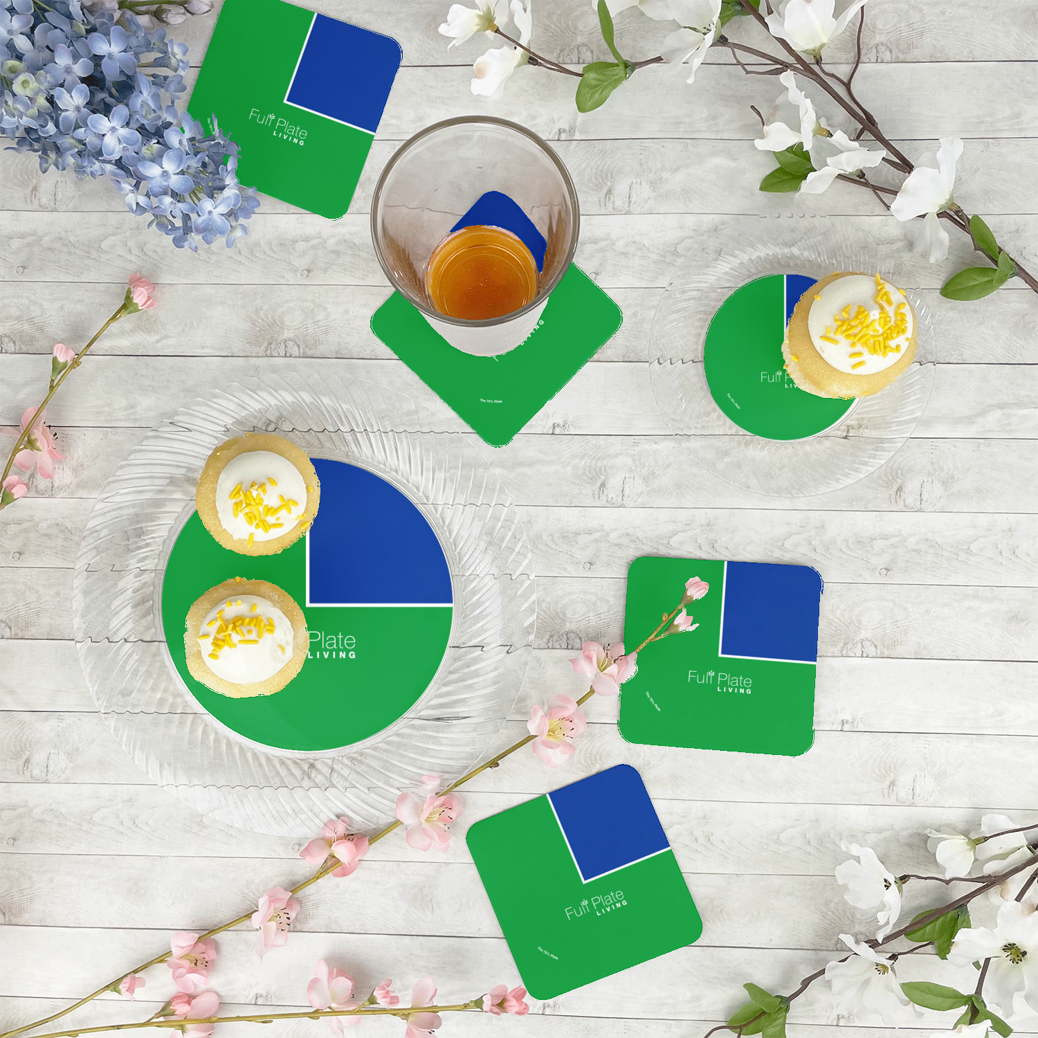These paper coasters are made from sustainably farmed trees. They are completely recyclable and have zero plastics in them. The coasters are manufactured at a facility that uses energy from renewable resources, re-use water & waster material from the production processes.