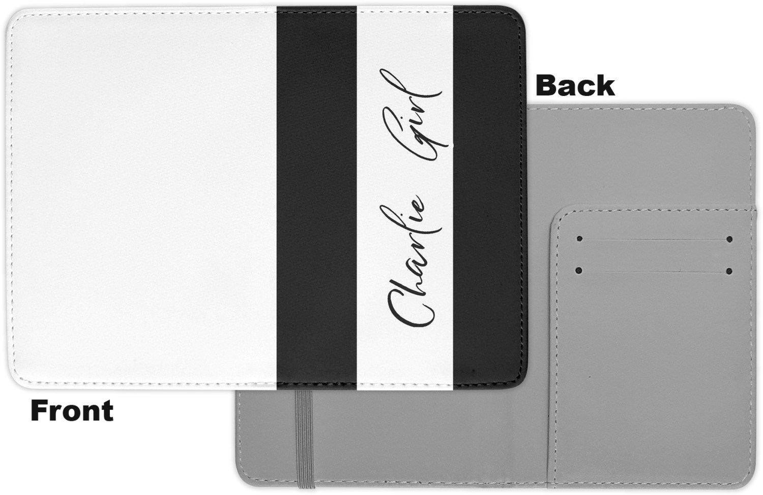 The passport holder has a beautiful inside made of faux leather, while the outside is a smooth slick vinyl like material printed with your personal design.