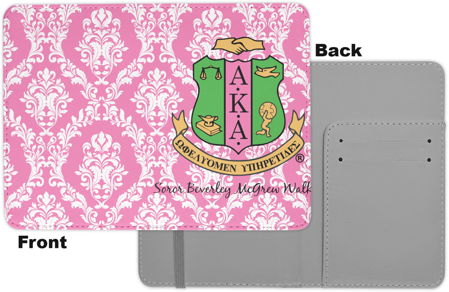 The passport holder has a beautiful inside made of faux leather, while the outside is a smooth slick vinyl like material printed with your personal design.