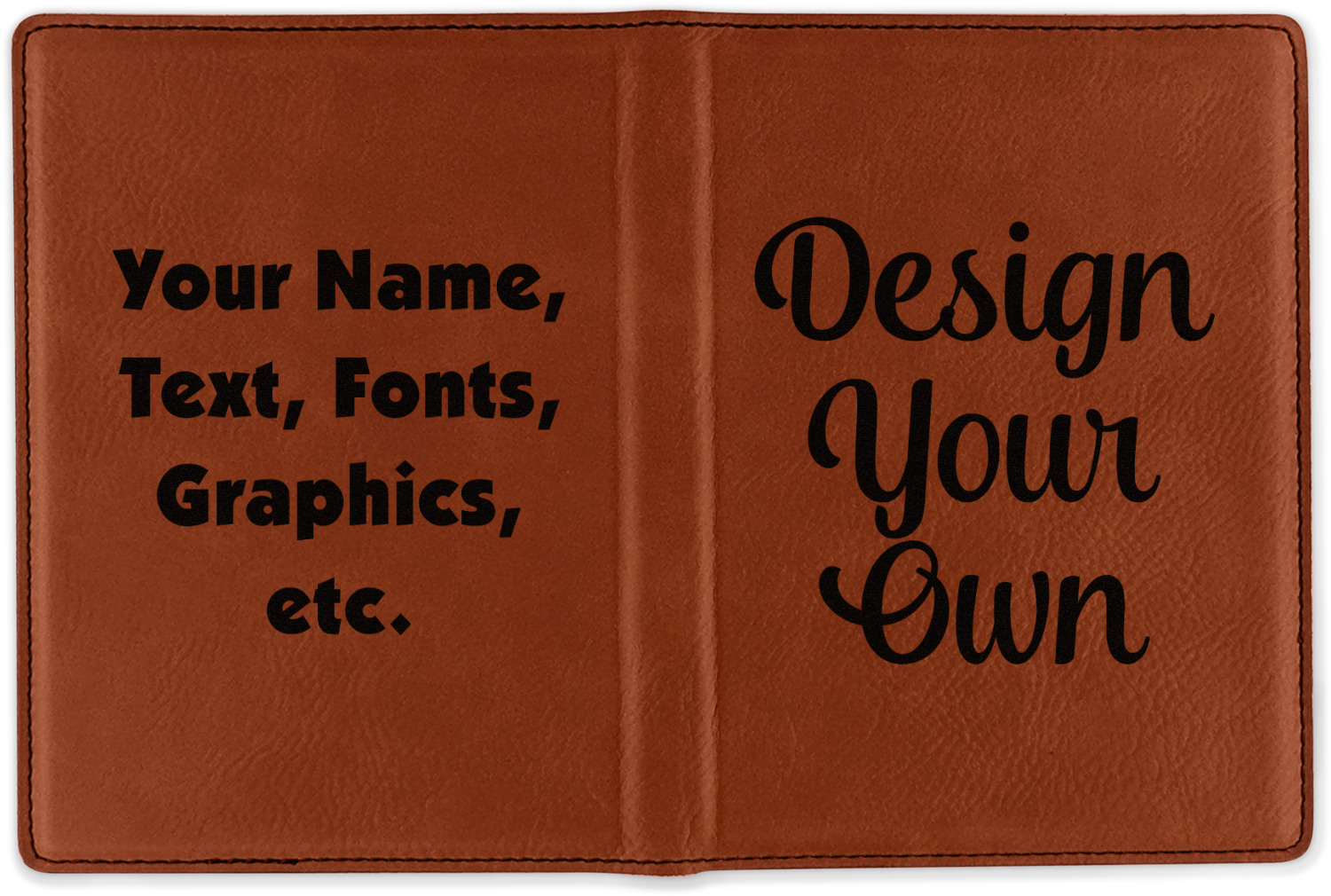 Although they are faux leather, these passport holders feel great in your hand. They are laser engraved either just on the front or the front and back. The image that is engraved onto your passport holder will be shades of black.