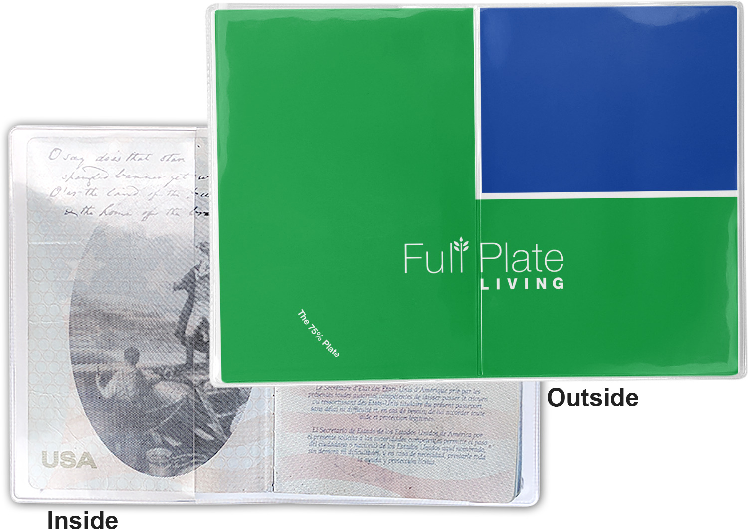 This cover is made of a sturdy clear vinyl with a personalized vinyl insert inside. There is a large and a small pocket on either side to hold the covers of your passport easily and firmly. The passport holder is approximately 7.5" x 5.25", the perfect size to snugly fit your passport. This slim cover is the perfect way to protect your passport without being one more bulky item you have to carry.