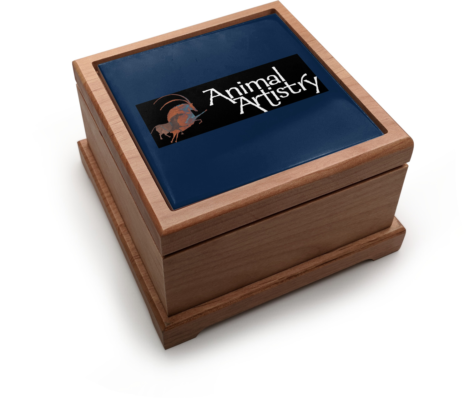 Our beautiful pet urns, shaped as decorative square boxes, are built from fine, red alder wood. The urn's bottom unscrews easily, with a screwdriver, allowing you to safely place your pet's ashes inside. The inner dimensions of the urn measure at 3.5" long, 3.5" wide, and 2" deep. The external base of the urn measures at 5.5" x 5.5", while its height is 3.5". We display your pet's picture, dates of living, or any other desired customization atop the ceramic tile that covers the top of the urn.