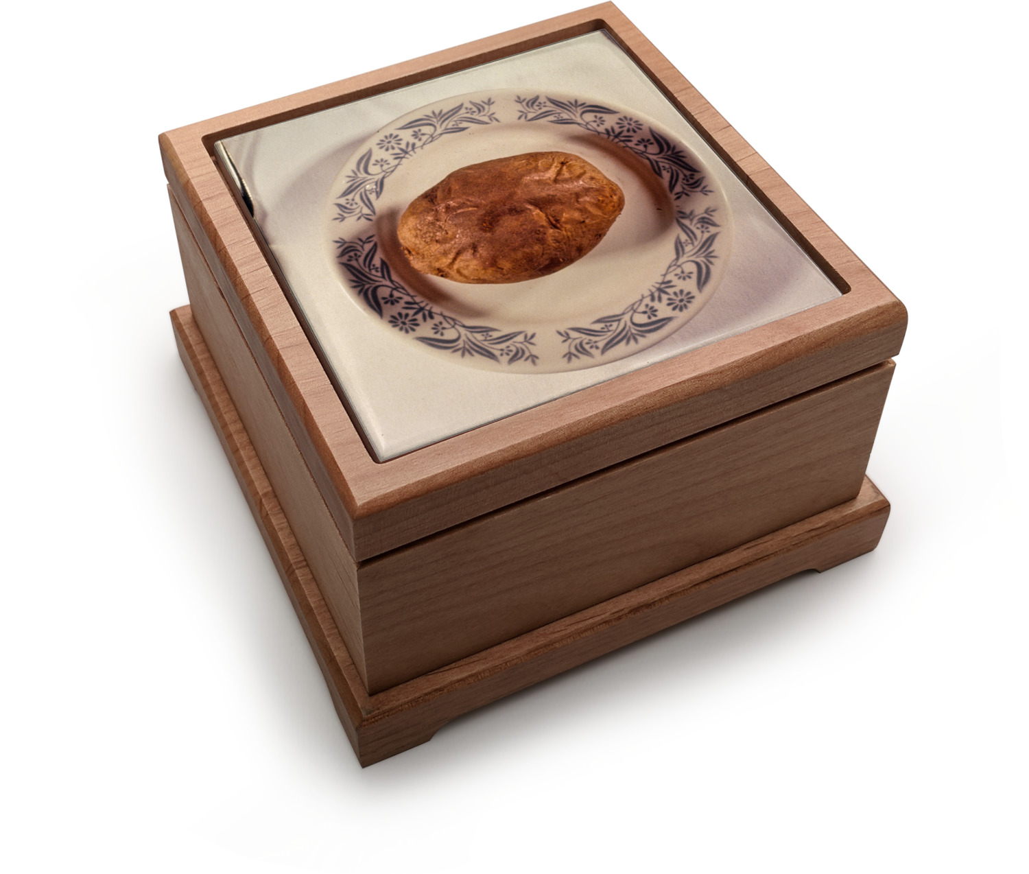 Our beautiful pet urns, shaped as decorative square boxes, are built from fine, red alder wood. The urn's bottom unscrews easily, with a screwdriver, allowing you to safely place your pet's ashes inside. The inner dimensions of the urn measure at 3.5" long, 3.5" wide, and 2" deep. The external base of the urn measures at 5.5" x 5.5", while its height is 3.5". We display your pet's picture, dates of living, or any other desired customization atop the ceramic tile that covers the top of the urn.
