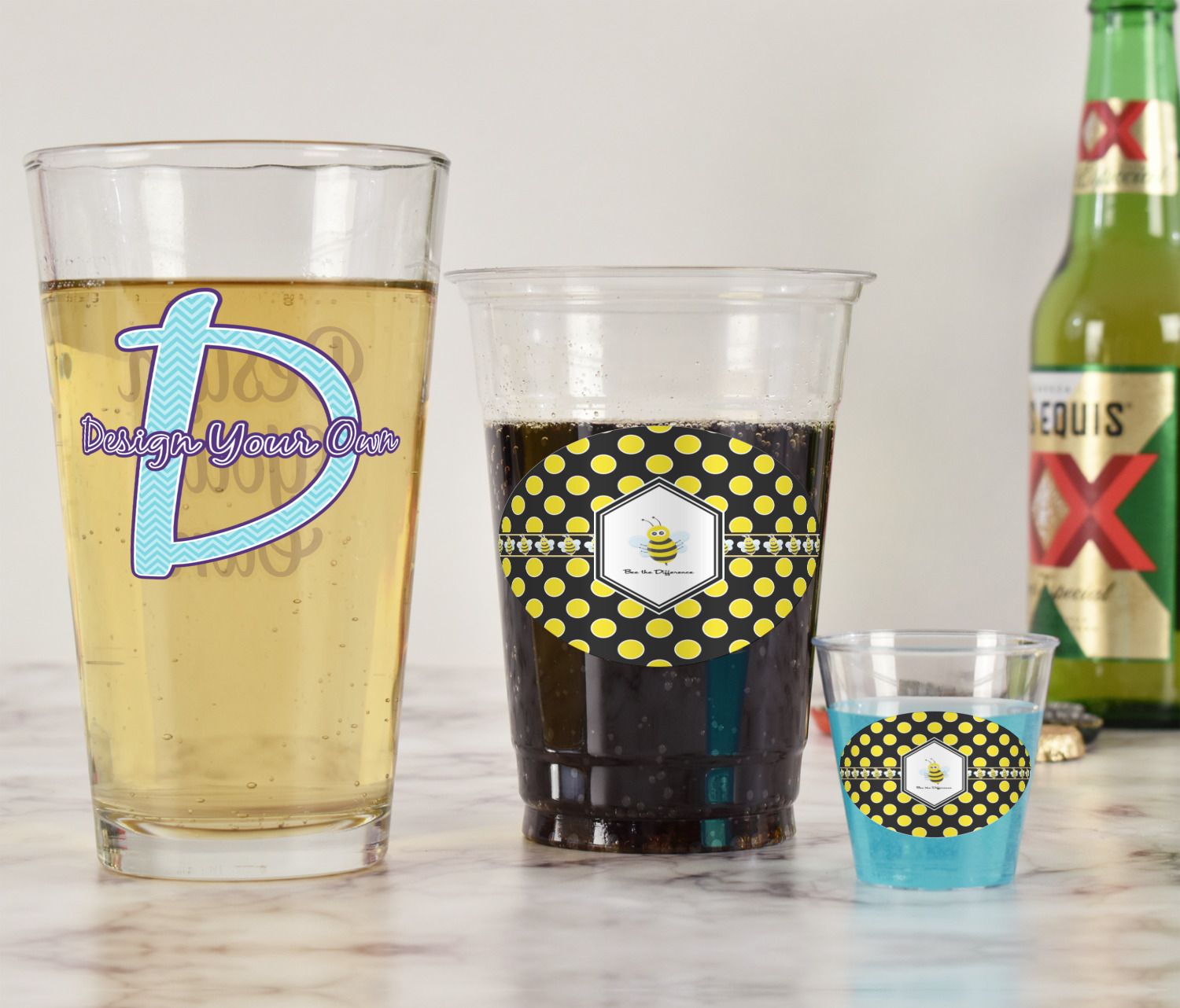 With these glasses you will get your choice of 2 content items on them. Perfect for company promotion or if you own a small restaurant or bar order these to perfectly match your business. Once designed we will print your design directly onto the glass and then a clear coat applied over it to ensure the print lasts for years to come.