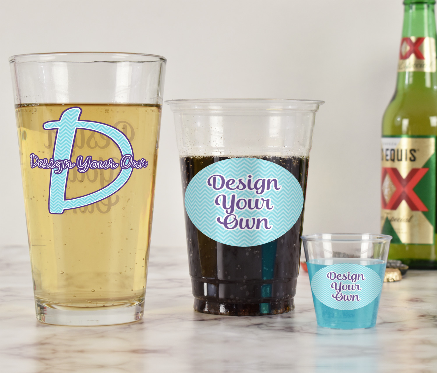 With these glasses you will get your choice of 2 content items on them. Perfect for company promotion or if you own a small restaurant or bar order these to perfectly match your business. Once designed we will print your design directly onto the glass and then a clear coat applied over it to ensure the print lasts for years to come.
