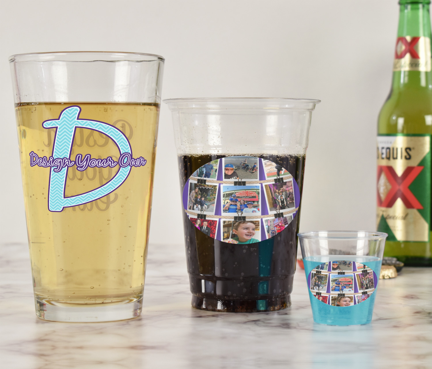 With these glasses you will get your choice of 2 content items on them. Perfect for company promotion or if you own a small restaurant or bar order these to perfectly match your business. Once designed we will print your design directly onto the glass and then a clear coat applied over it to ensure the print lasts for years to come.