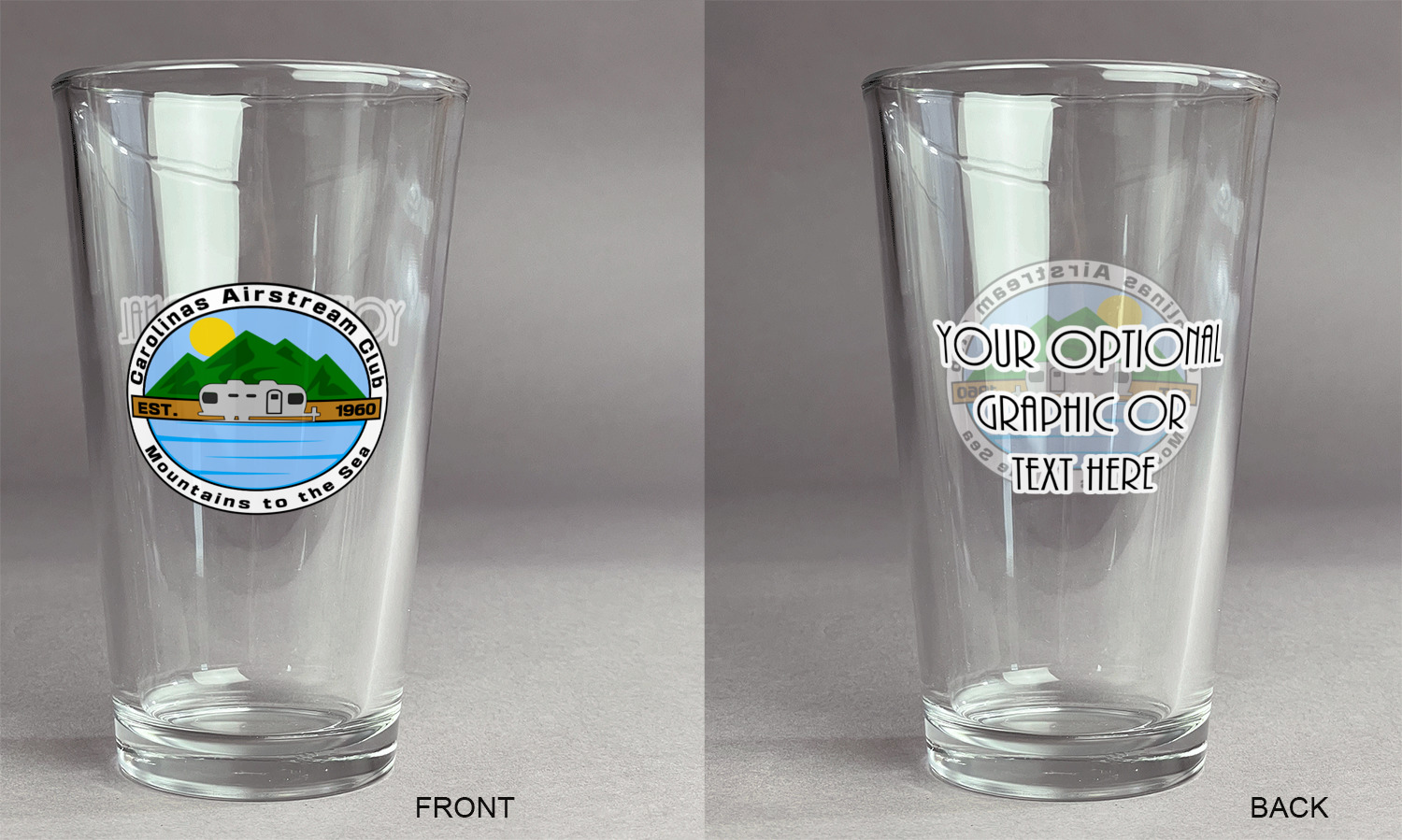 Carolina Airstream Club Design on Custom Pint Glass - Full Color Logo