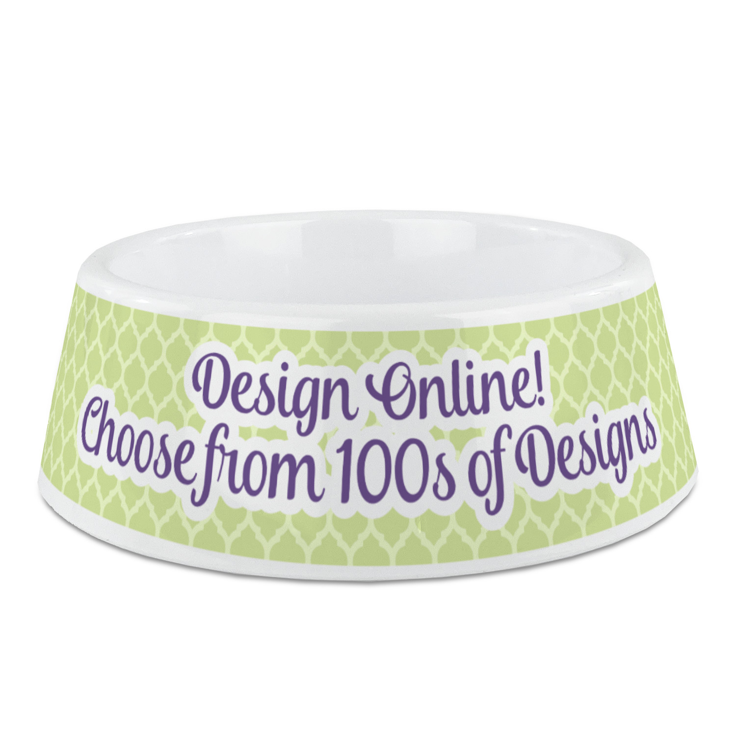 Made from a nearly indestructible composite polymer plastic these bowls come in 3 different sizes to suit any breed of dog. The small bowl measures approximately 5 in diameter and 1.75 tall and holds approximately 1.5 cups of food or water. The medium bowl measures approximately 6 in diameter and 2.25 tall and holds approximately 3 cups of food or water. The large bowl measures approximately 7.2 in diameter and 2.25 tall and holds approximately 4.5 cups of food or water. These bowls are microwave and dishwasher safe so no matter what type of food your dog eats it can be easily cleaned up for the next use. Design your own or use one of our 500 plus designs to make these pet bowls uniquely yours.