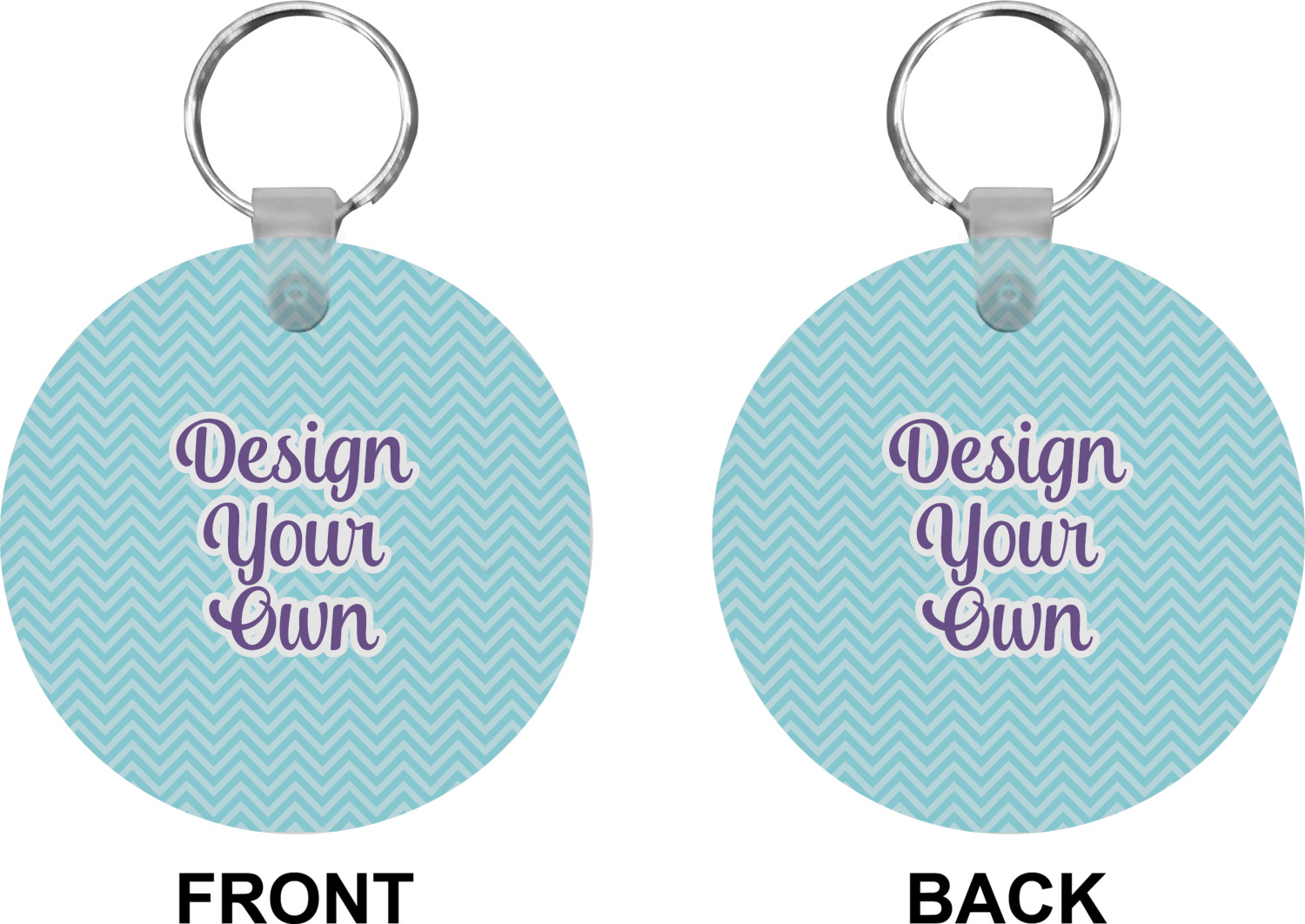 Our personalized keychains attach to the included metal, split key ring with a plastic, removable snap. Since a metal ring is included with your purchase, you have the liberty to keep your keys together on the ring, with or without your unique keychain. We offer this keychain in three different shapes: circle, heart, or diamond. We print your personalized design(s) on both sides of the key chain, and the surface has a glossy, reflective finish that only emphasizes your design. Each keychain is approximately 2.25 by 2.25 inches.