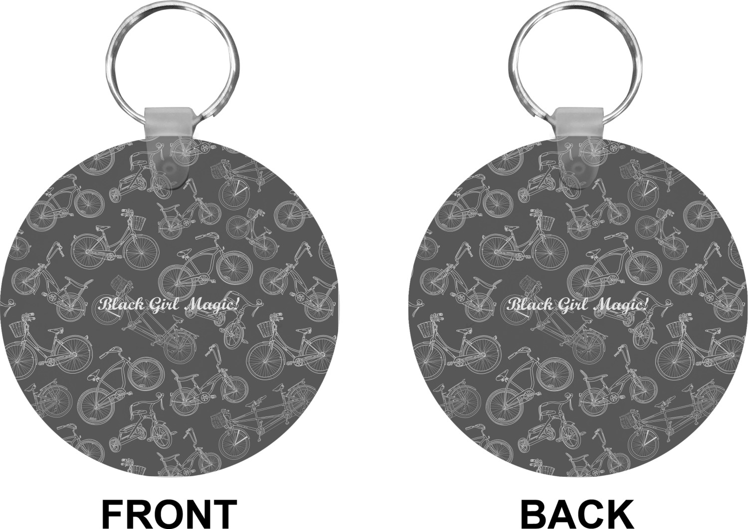 Our personalized keychains attach to the included metal, split key ring with a plastic, removable snap. Since a metal ring is included with your purchase, you have the liberty to keep your keys together on the ring, with or without your unique keychain. We offer this keychain in three different shapes: circle, heart, or diamond. We print your personalized design(s) on both sides of the key chain, and the surface has a glossy, reflective finish that only emphasizes your design. Each keychain is approximately 2.25 by 2.25 inches.