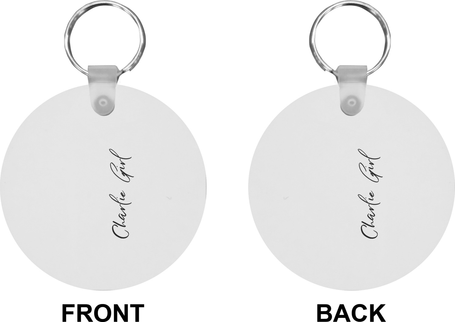 Our personalized keychains attach to the included metal, split key ring with a plastic, removable snap. Since a metal ring is included with your purchase, you have the liberty to keep your keys together on the ring, with or without your unique keychain. We offer this keychain in three different shapes: circle, heart, or diamond. We print your personalized design(s) on both sides of the key chain, and the surface has a glossy, reflective finish that only emphasizes your design. Each keychain is approximately 2.25 by 2.25 inches.